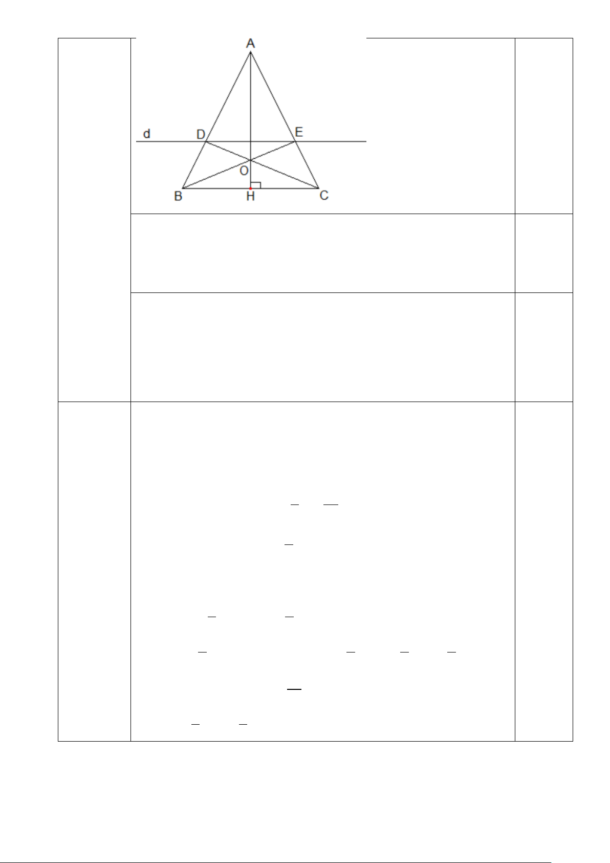 Bài 6: (2,0 điểm) Cho tam giác ABC cân tại A. Kẻ một đường thẳng d song song với BC
