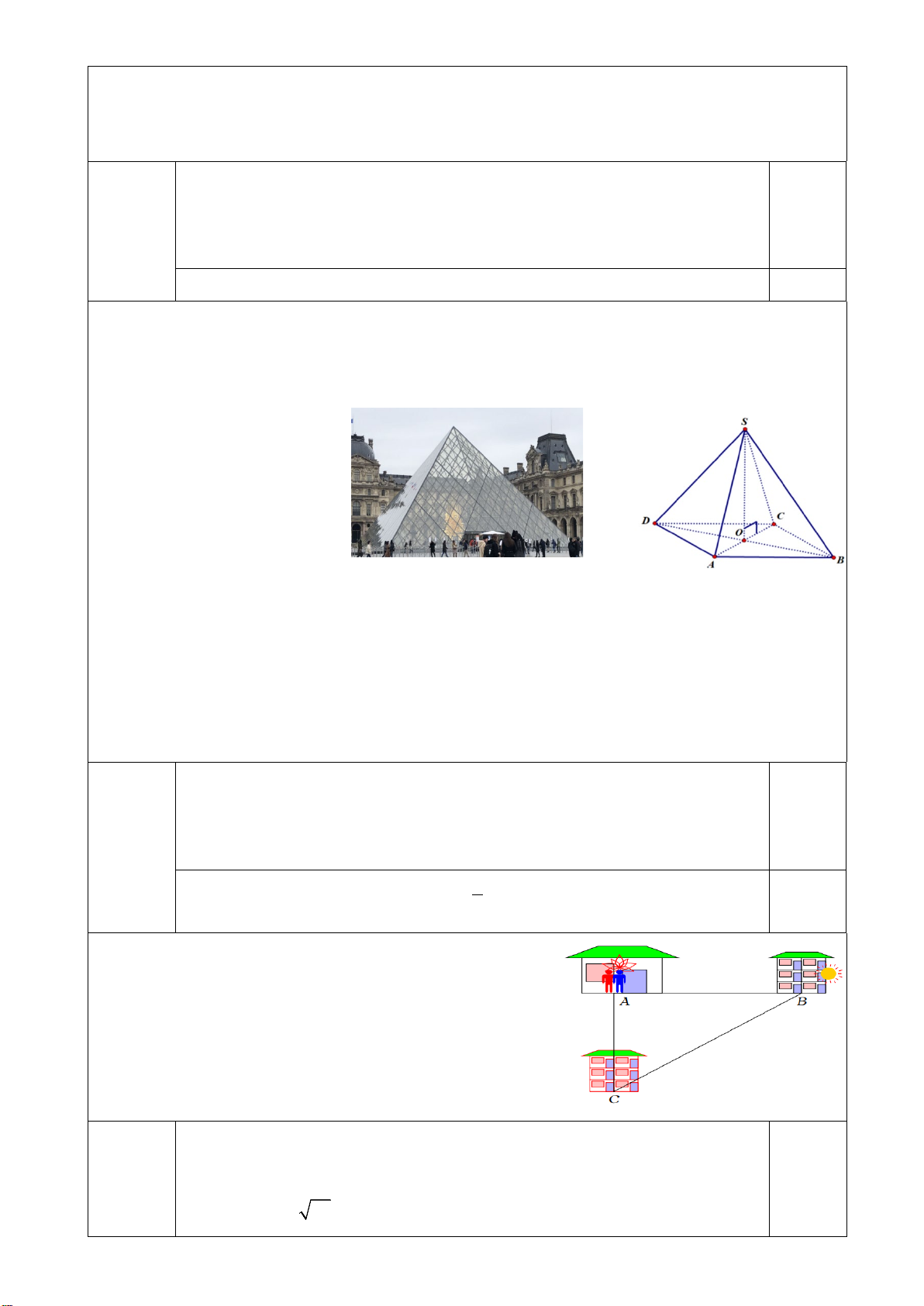 Bài 4 (1,0 điểm). Kim tự tháp kính Louvre (tên tiếng Pháp: Pyramide du Louvre) là một kim