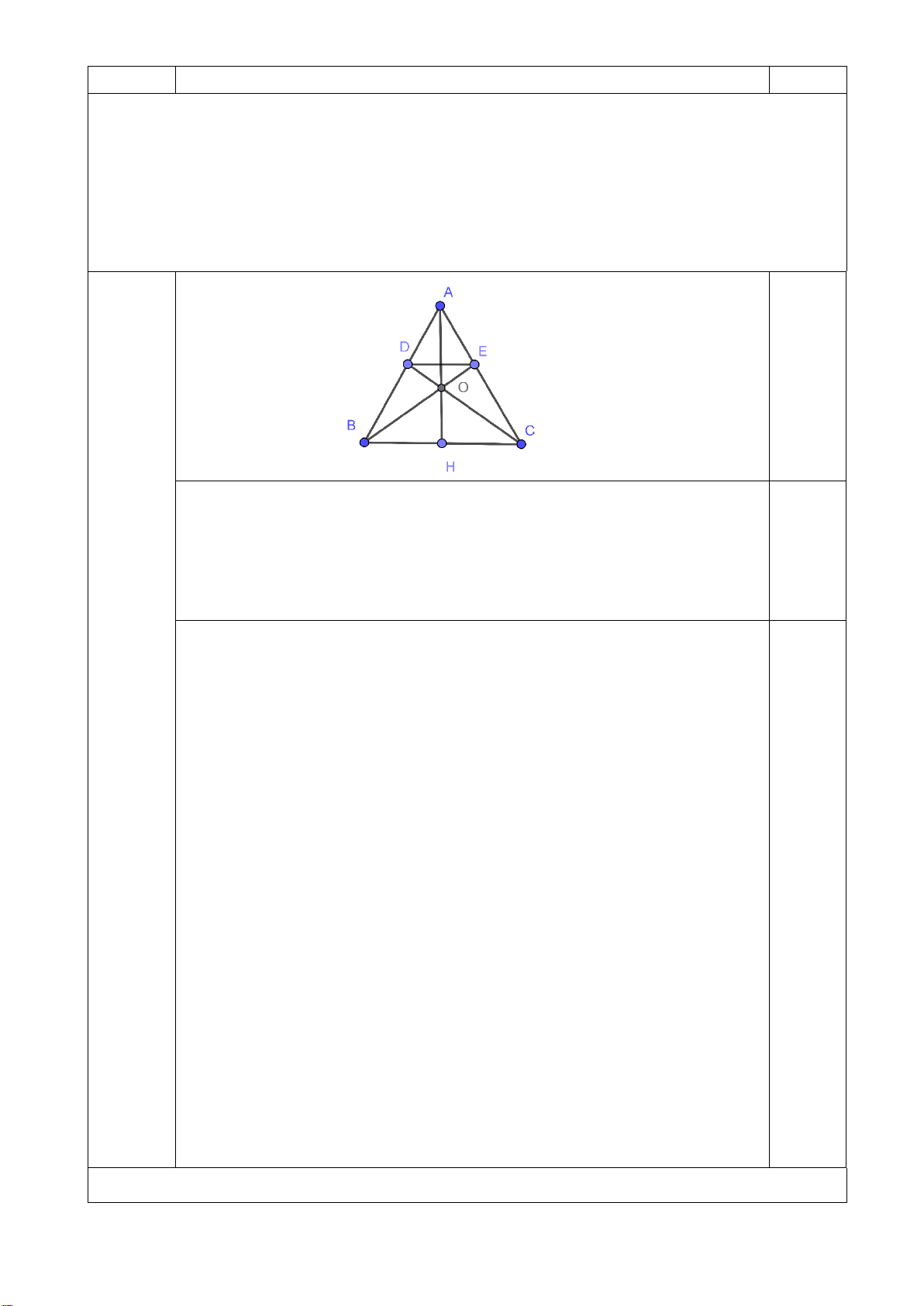 d) Gọi O là giao điểm của BEvàDC ; H là trung điểm của BC . Chứng minh A;O;H thẳng hàng. 0,5