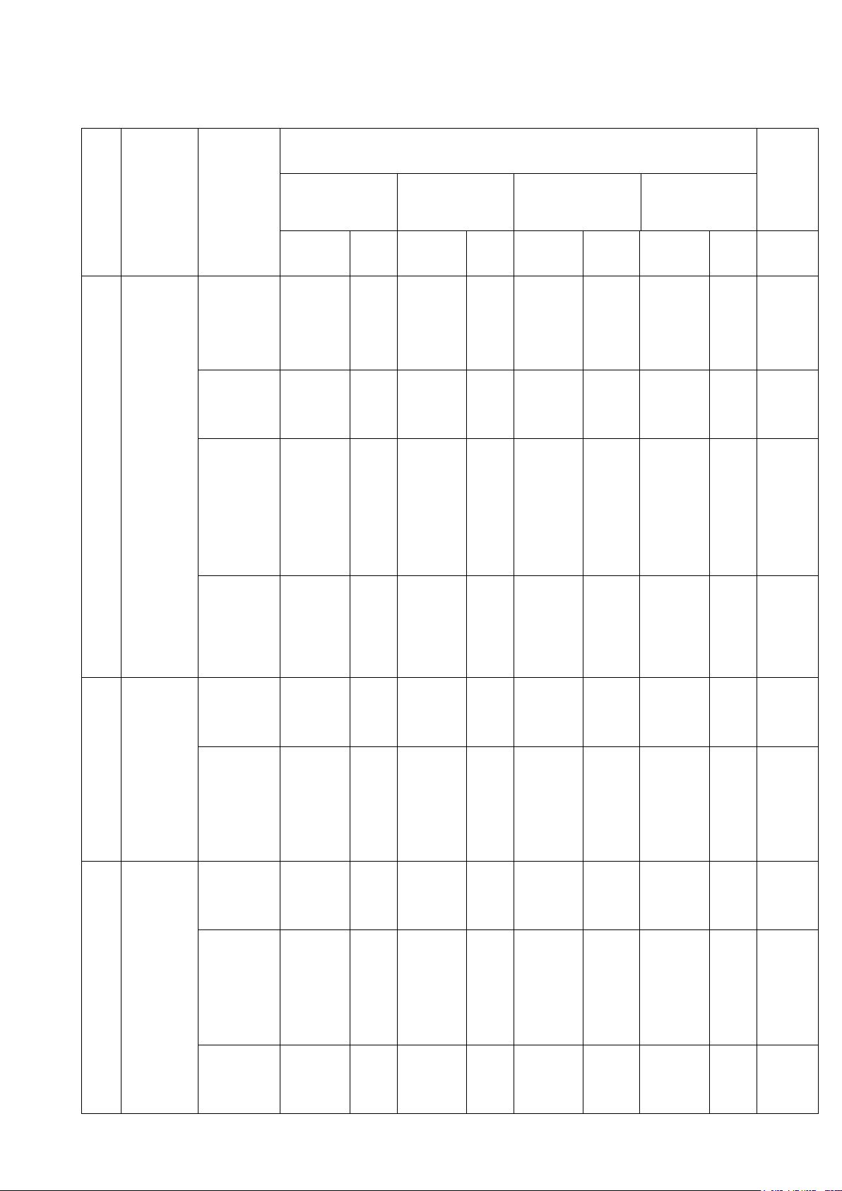 TNKQ TL TNKQ TL TNKQ TL TNKQ TL Đơn thức 1 1 2 1 0,25 0,25 0,5 Đa thức 1 1 1 1 0,25 0,25 0,5 Đa Phép 1 thức cộng và 1 1 phép trừ 0,75 đa thức 0,25 0,5 Phép nhân, 1 1 1 1 chia đa 2 0,25 1,0 0,25 0,5 thức Hiệu hai 1 Hằng bình 0,25 0,25