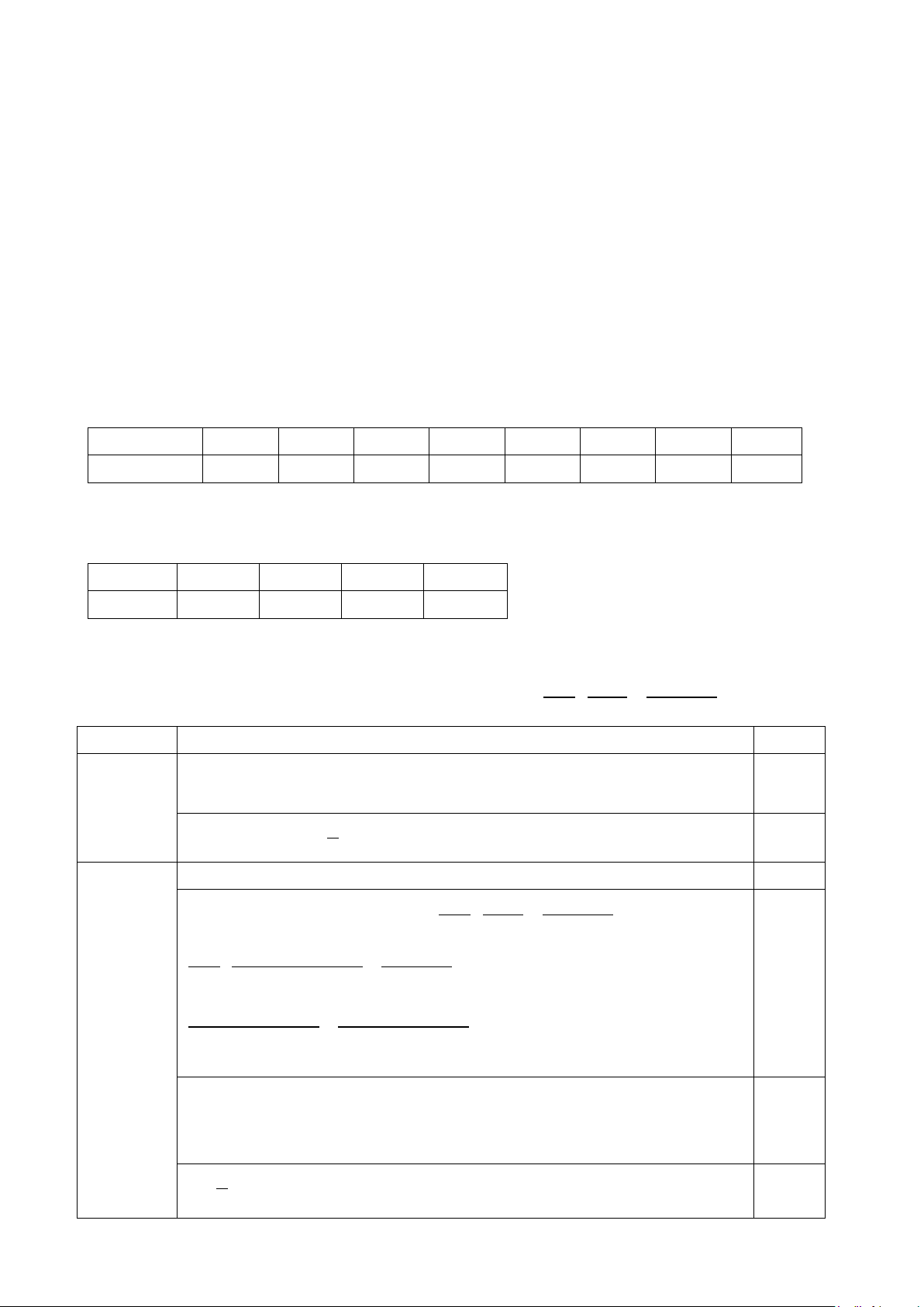+ Thiếu hoặc sai đơn vị trừ 0,25 điểm/lỗi; toàn bài không trừ quá 0,5 điểm.
