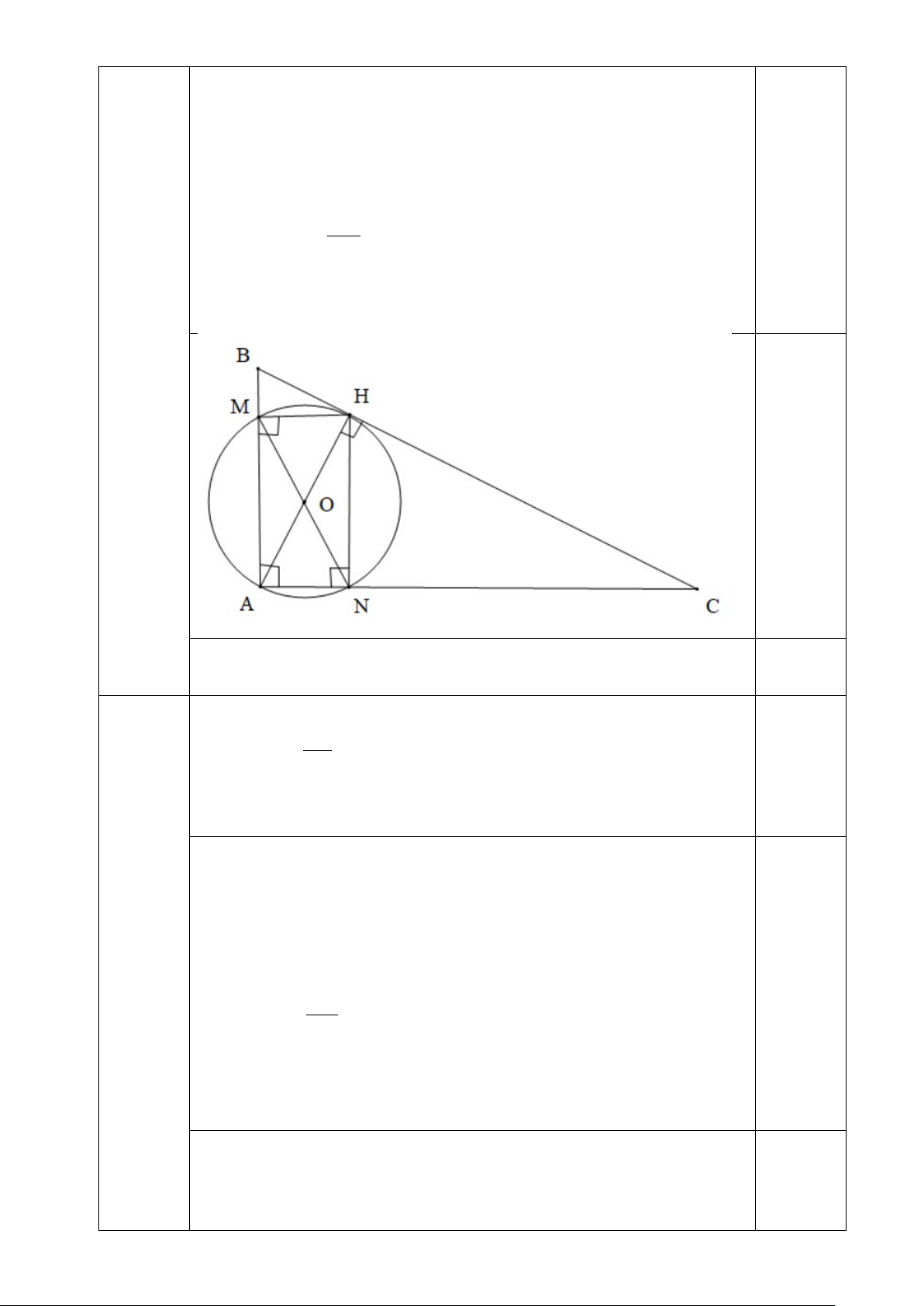 A M , H, N cùng thuộc một đường tròn và 3 tan BM C = . CN Câu Nội dung Điểm 1.
