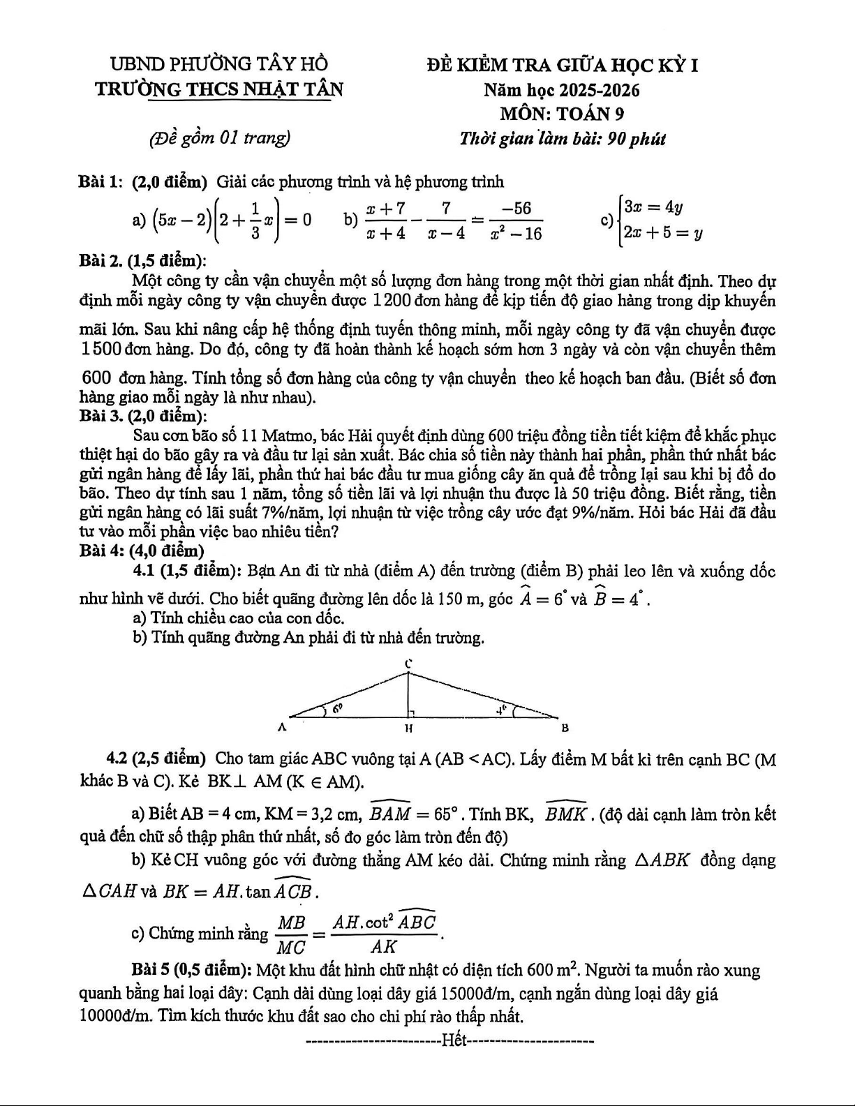 Xin giới thiệu đến quý thầy, cô giáo và các em học sinh đề kiểm tra giữa học kỳ 1 môn Toán 9 năm học 2025 – 2026 trường THCS Nhật Tân, phường Tây Hồ, thành phố Hà Nội.