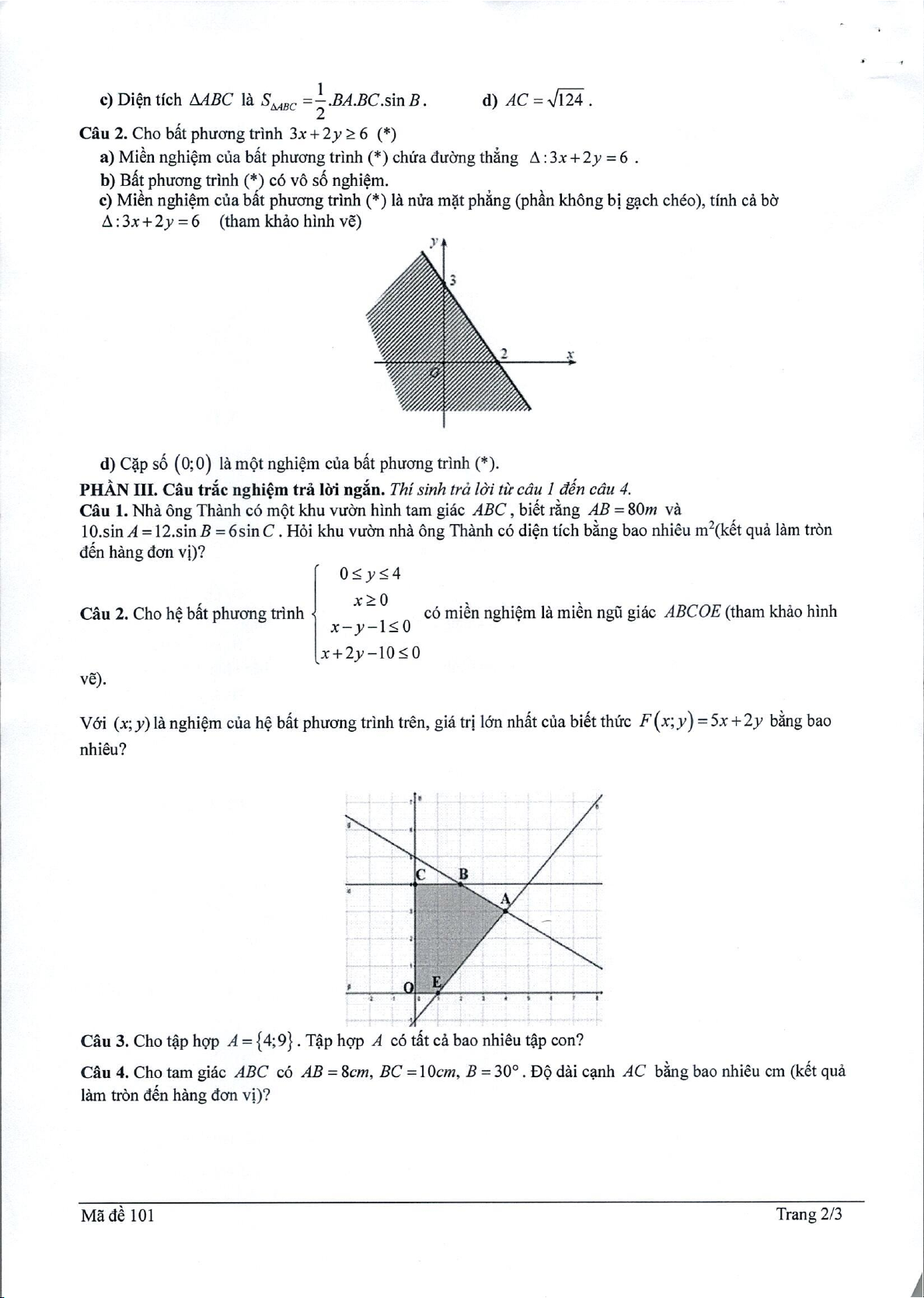 thu được là lớn nhất. MÃ ĐỀ 102+104 Câu ý Nội dung Điểm