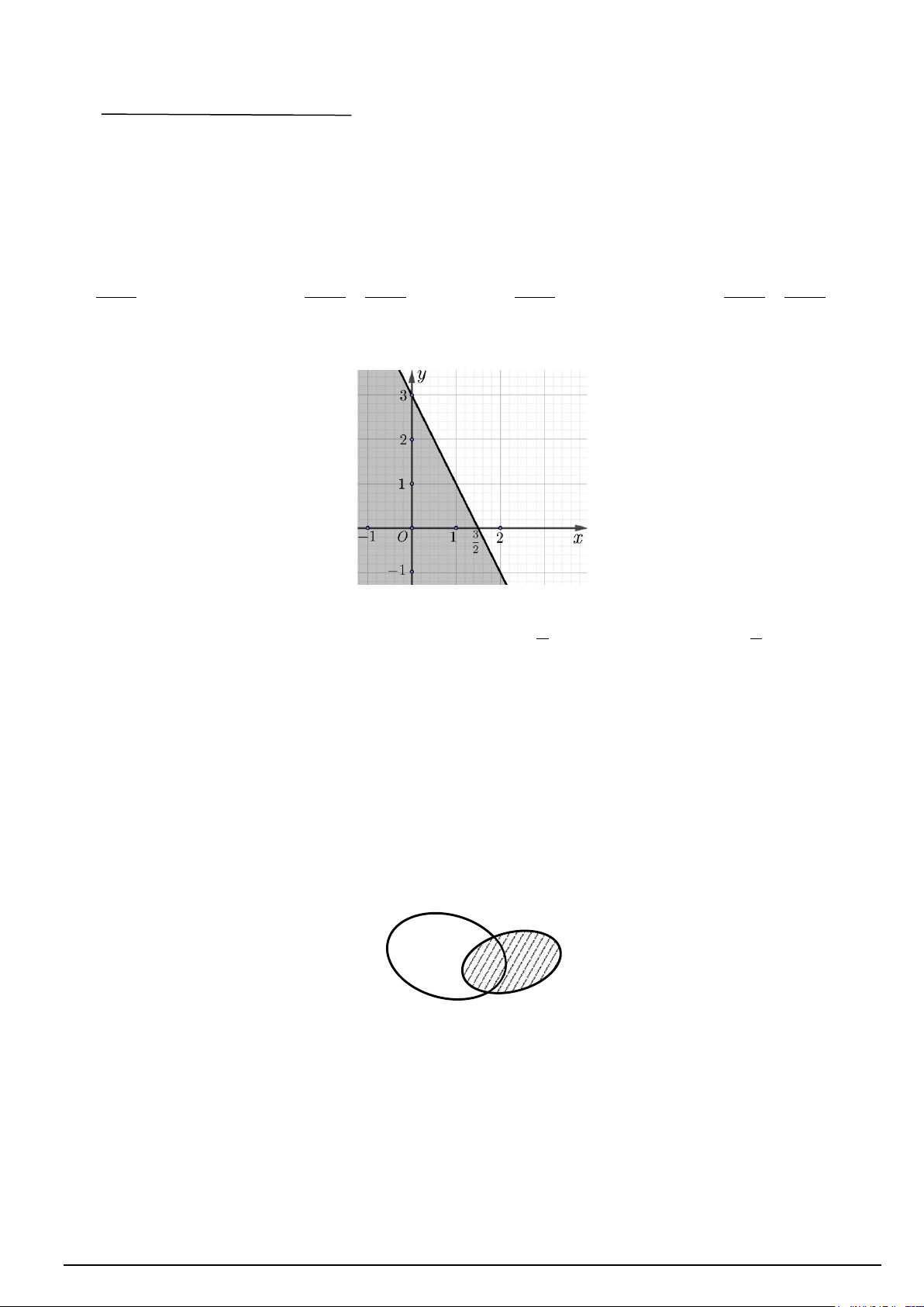 Câu 2. Cho bất phương trình bậc nhất hai ẩn có biểu diễn miền nghiệm như hình vẽ. (miền nghiệm là phần