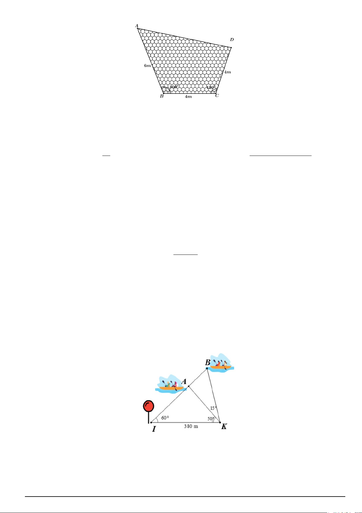 Câu 2. Người ta định lát gạch tổ ong trên mảnh đất hình tứ giác ABCD như mô hình bên dưới. Biết