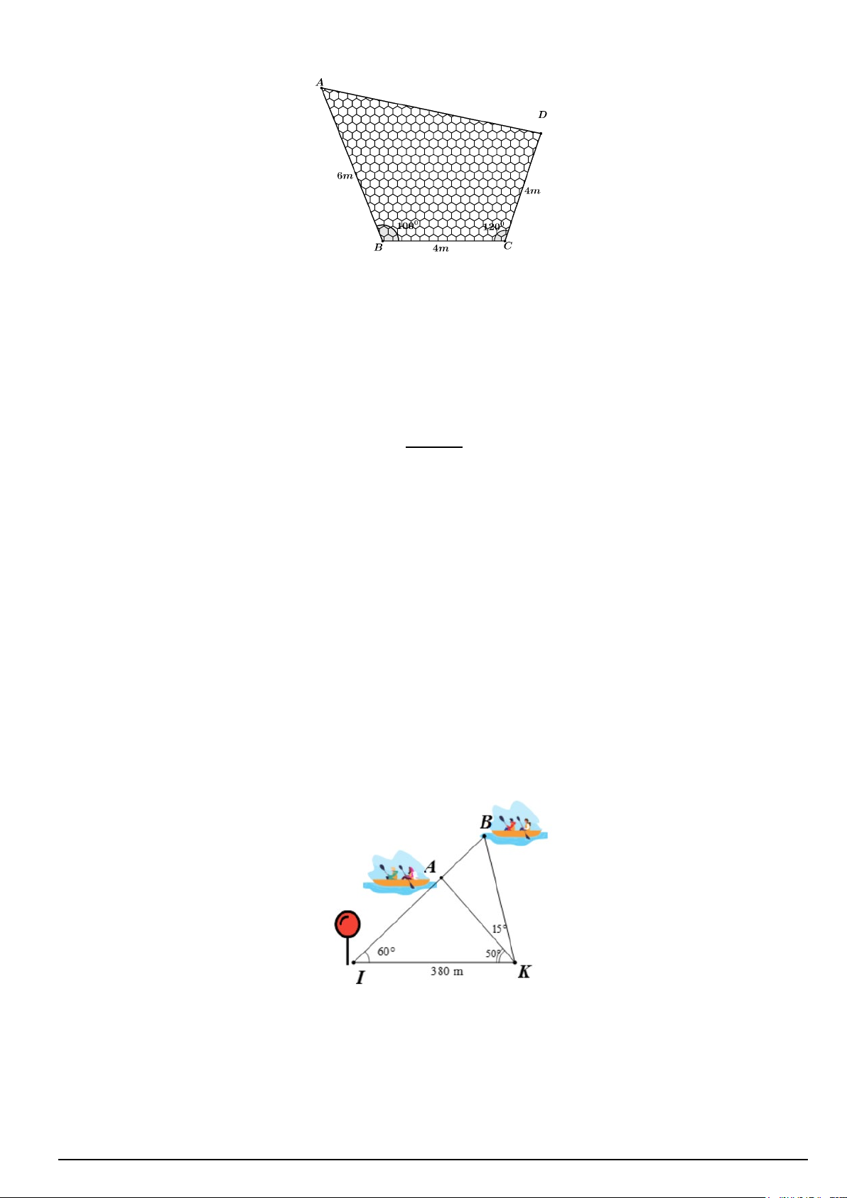 Câu 1. Người ta định lát gạch tổ ong trên mảnh đất hình tứ giác ABCD như mô hình bên dưới. Biết
