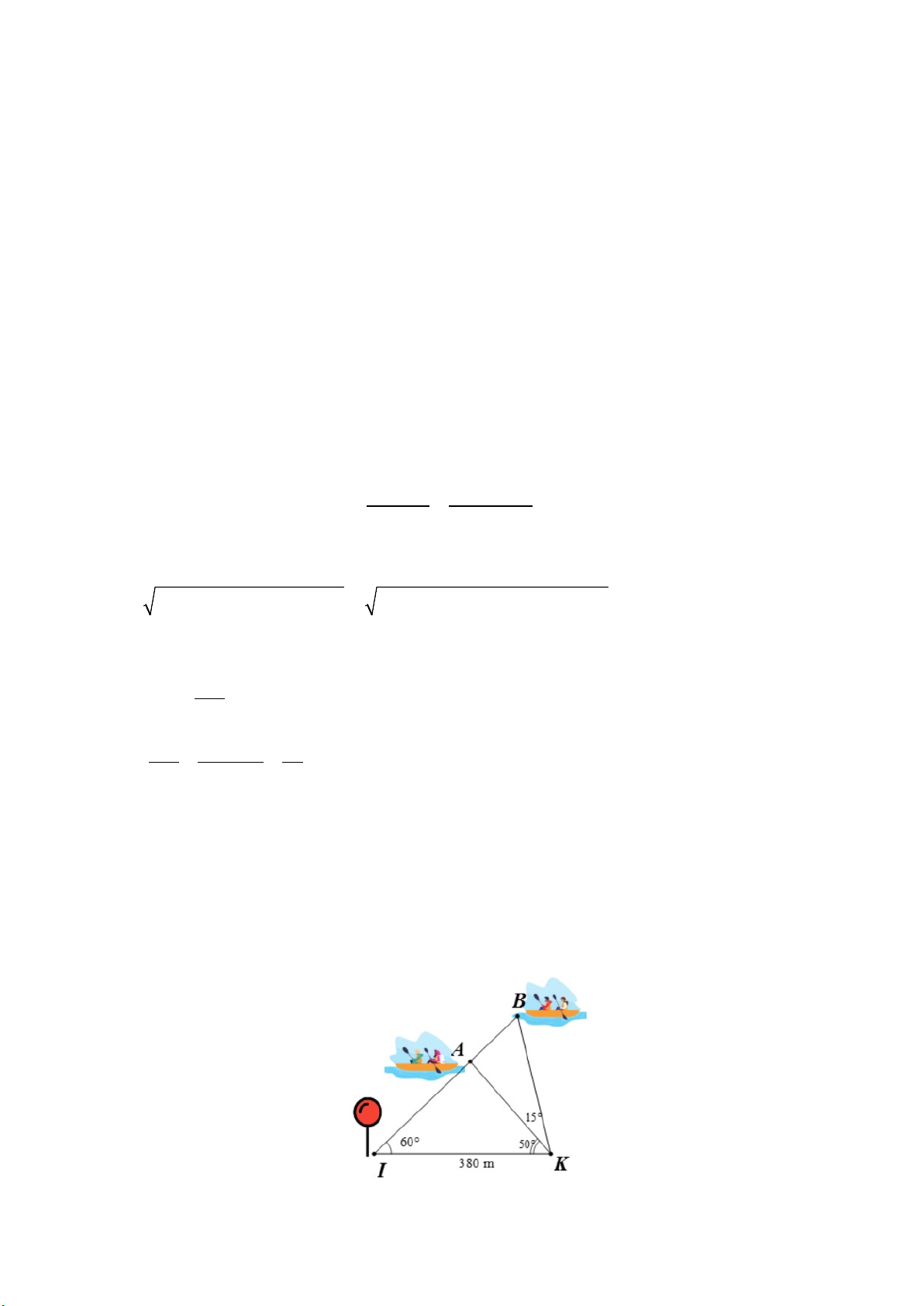 IK sin AIK 380⋅sin60 AK ° = ⇒ = = ≈ 350, ( 21 m) . ( 0,25 đ) sin AIK sin KAI sin KAI sin70° Lại có: = ° −