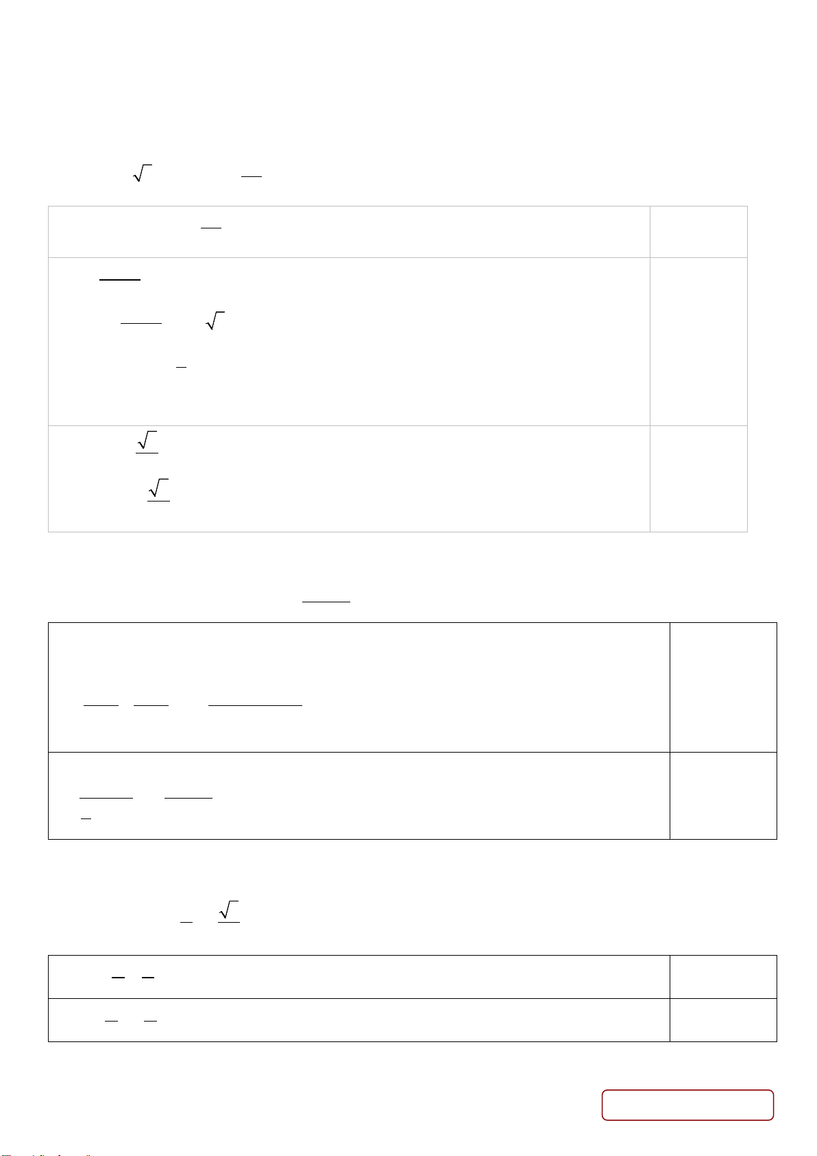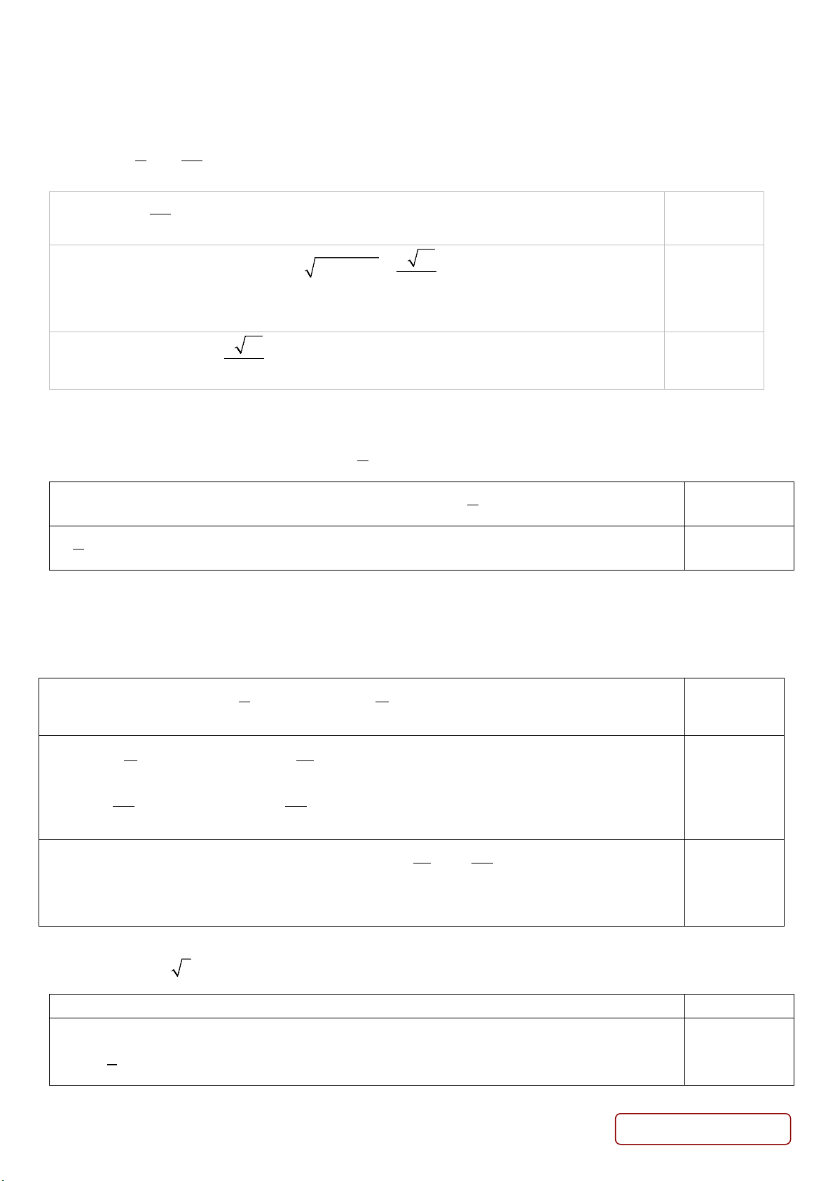 . Tìm giá trị lượng giác cosα. 2 Vì 3π π < α < . nên cosα < 0 . 2 1 2 0,25 = 1+ tan a 2 cos a Ta có 1 ⇔ = 1+ ( 5)2 = 6 2 cos a 2 1 ⇔ cos a = 6 6 0,25 cosa = (l) 6 ⇔ 6 cosa = − (n) 6