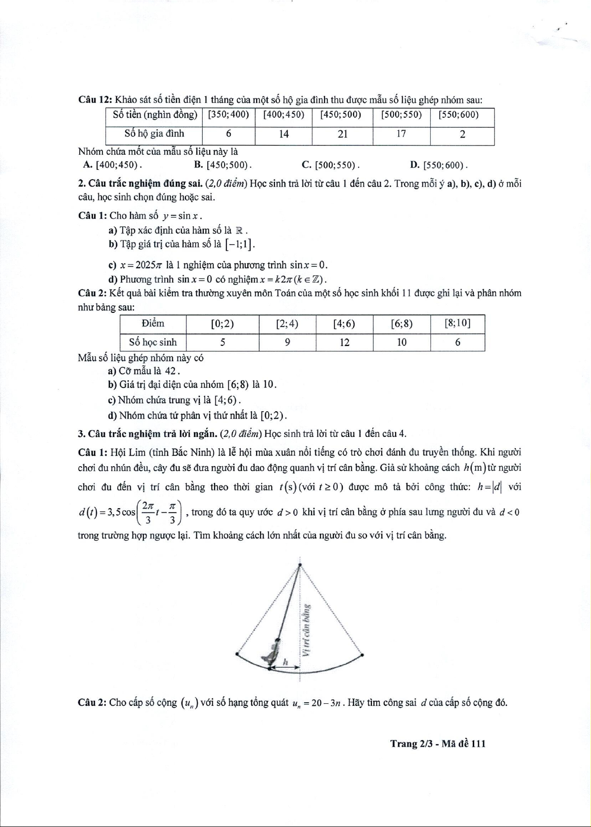 Học sinh lựa chọn chính xác cả 04 ý trong 1 câu hỏi được 1 điểm. Câu Mã đề 111 112 113 114 1 a) Đ a) Đ a) Đ a) Đ b) Đ b) Đ b) Đ b) Đ c) Đ c) S c) S c) Đ d) S d) Đ d) Đ d) S 2 a) Đ a) Đ a) Đ a) Đ b) S b) Đ b) Đ b) S c) Đ c) S c) S c) Đ d) S d) S d) S d) S