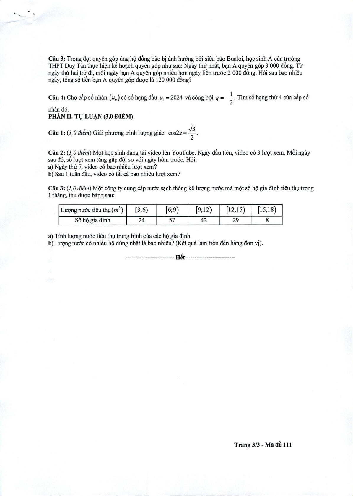 PHẦN II. TỰ LUẬN (3,0 ĐIỂM) Mã đề 111+113 Câu Nội dung Điểm 3 cos2x cos 2x cos 0,25 2 6 2x k 2 6 0,25 1