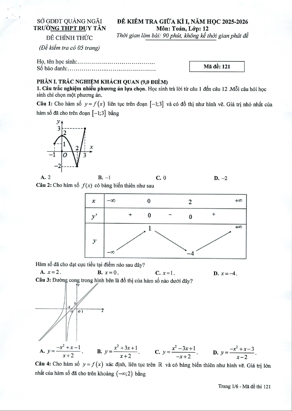 TRƯỜNG THPT DUY TÂN ĐÁP ÁN ĐỀ CHÍNH THỨC