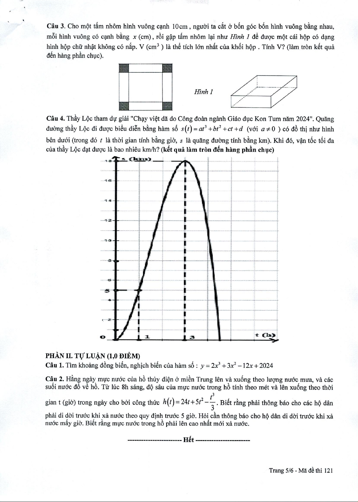 = 0 24 +10t − t = 0 t =12 (t/m) BBT: 0,25 t 8 12 24 + 2 h'(t) + 0 − h max h(t)