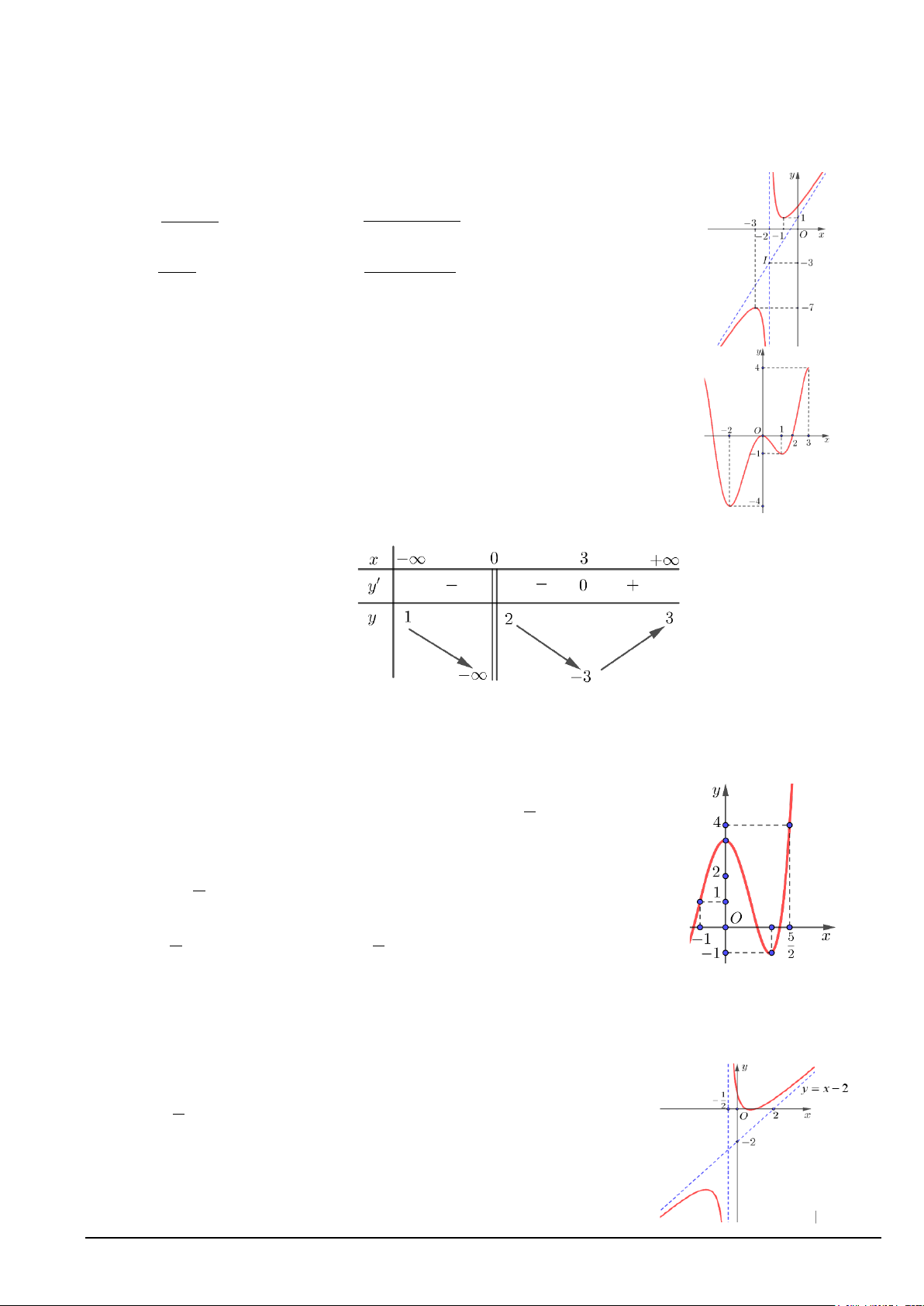 Câu 7. Cho hàm số có đồ thị như hình bên. Tiệm cận xiên của đồ thị hàm số là A. 1 x = − .