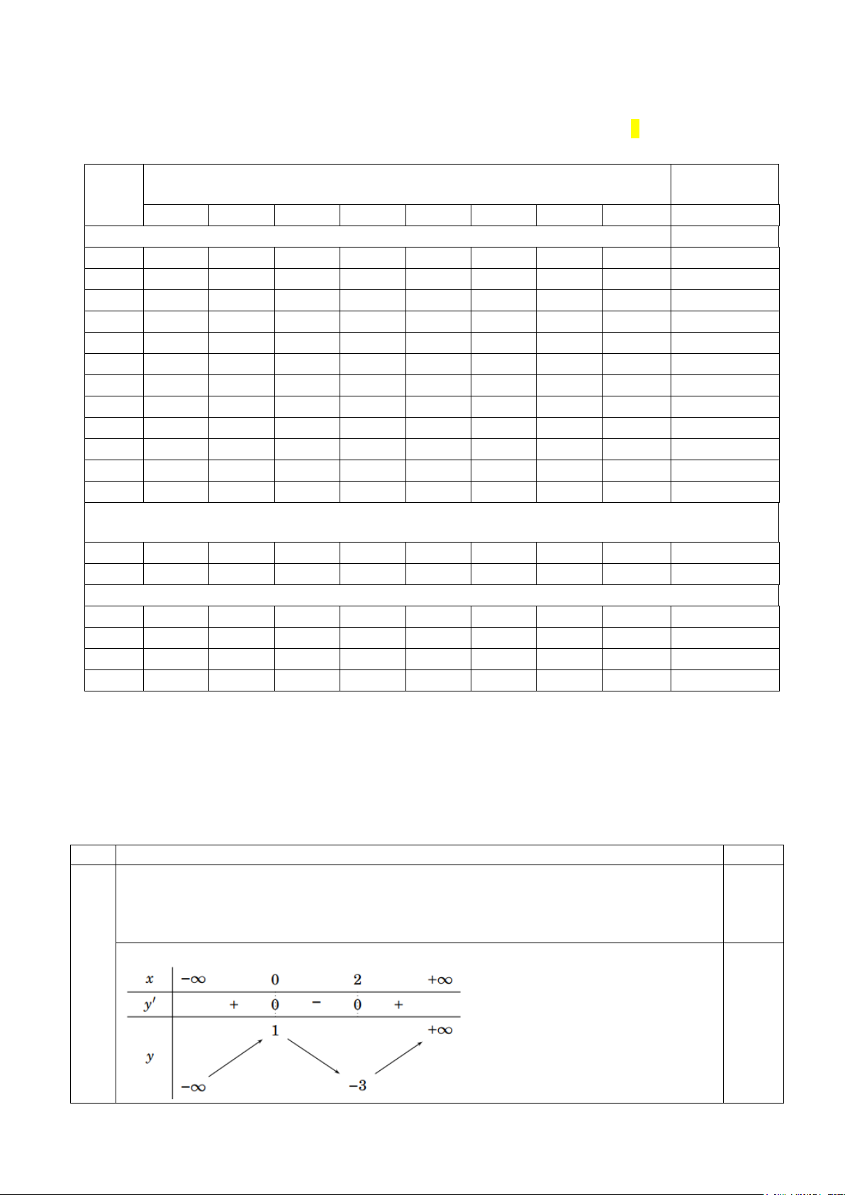 Câu 3. Cho hàm số y = f (x) có bảng biến thiên như sau: