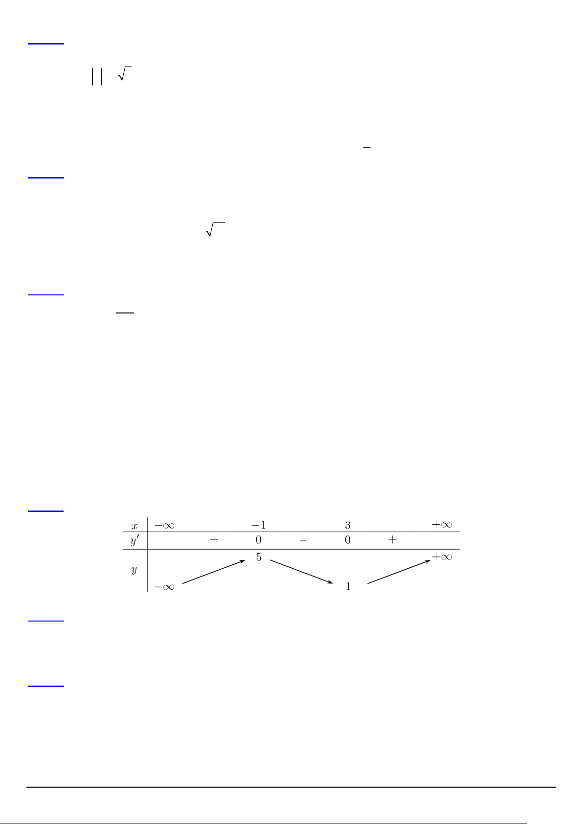 Hàm số y f x đạt cực đại tại điểm nào sau đây? A. M 1 ; 3 . B. y 3 . C. x 1 . D. x 1 . 1 Câu 4: Cho hàm số 3 2