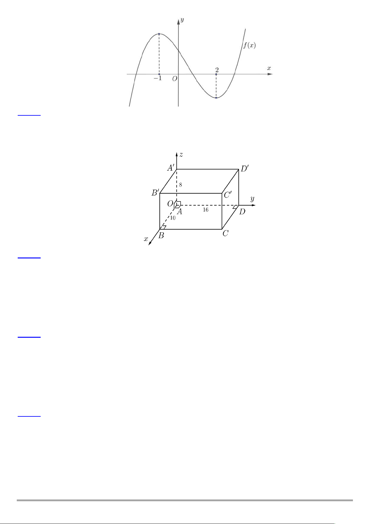 f x x bx cx d có đồ thị như hình vẽ dưới. Tính giá trị của biểu thức T f 2 0 f 0 . Trang 3