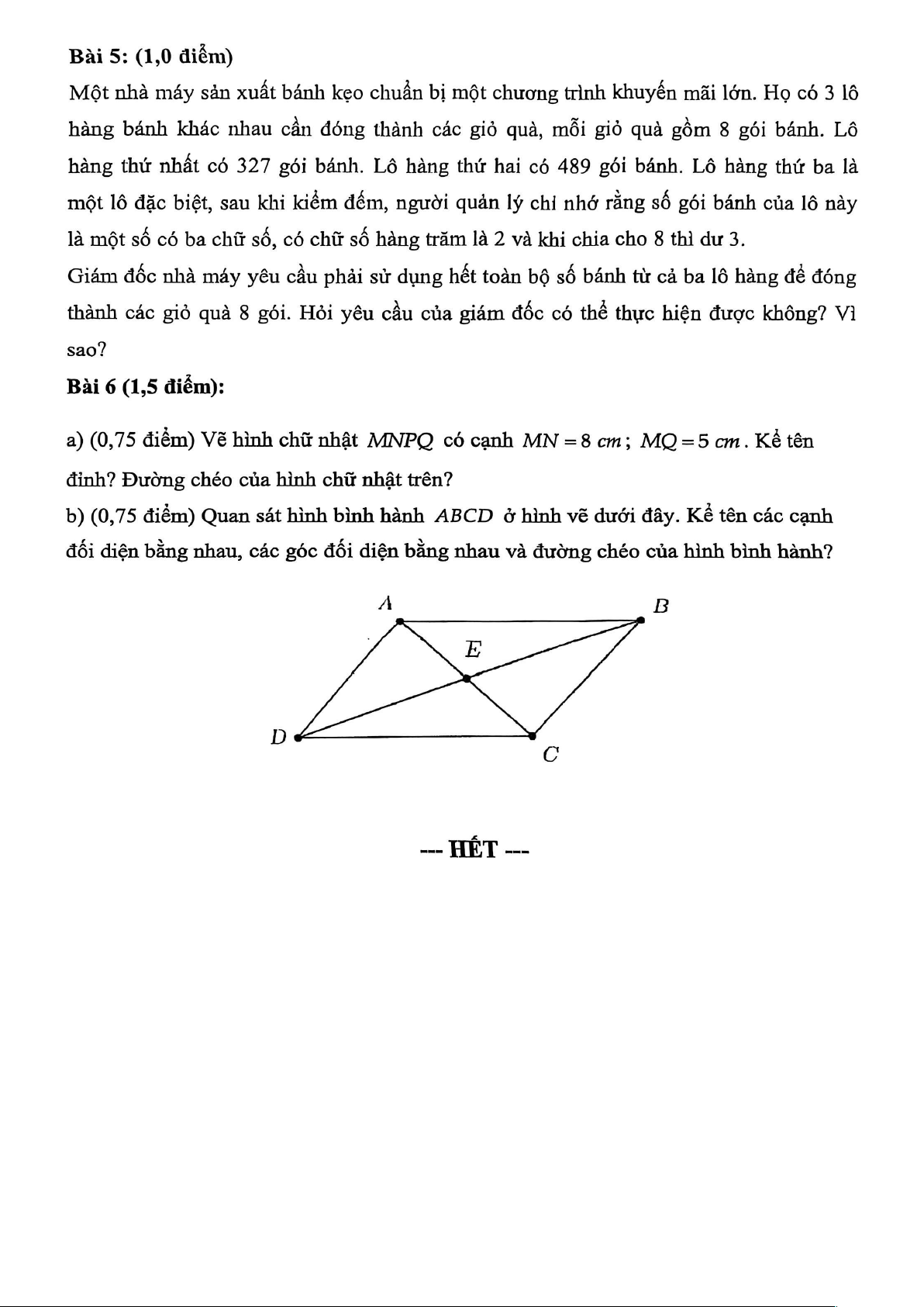 Đề giữa học kì 1 Toán 6 năm 2024 – 2025 trường Ban Mai School – Hà Nội