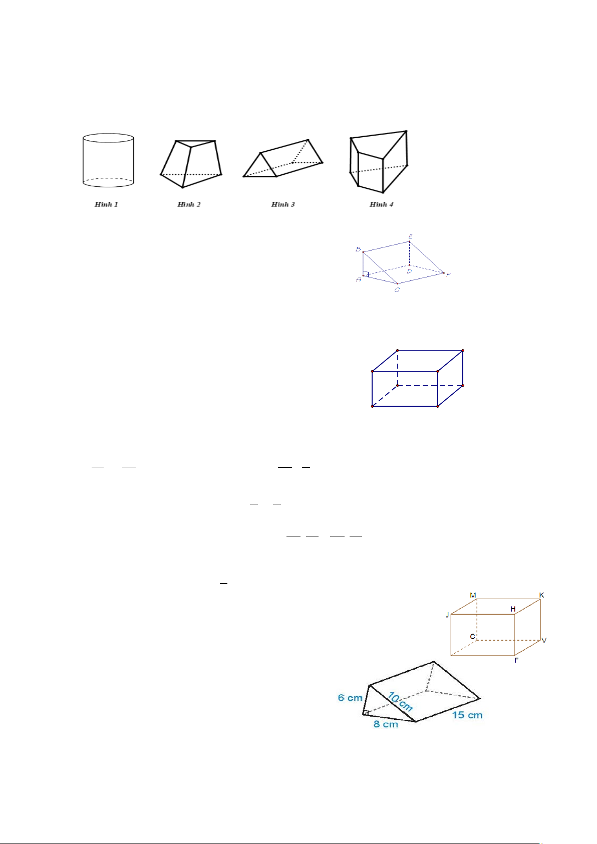 Câu 13: Hình nào sau đây là hình lăng trụ đứng tứ giác A. Hình 1 . B. Hình 2 . C. Hình 3 . D. Hình 4 .
