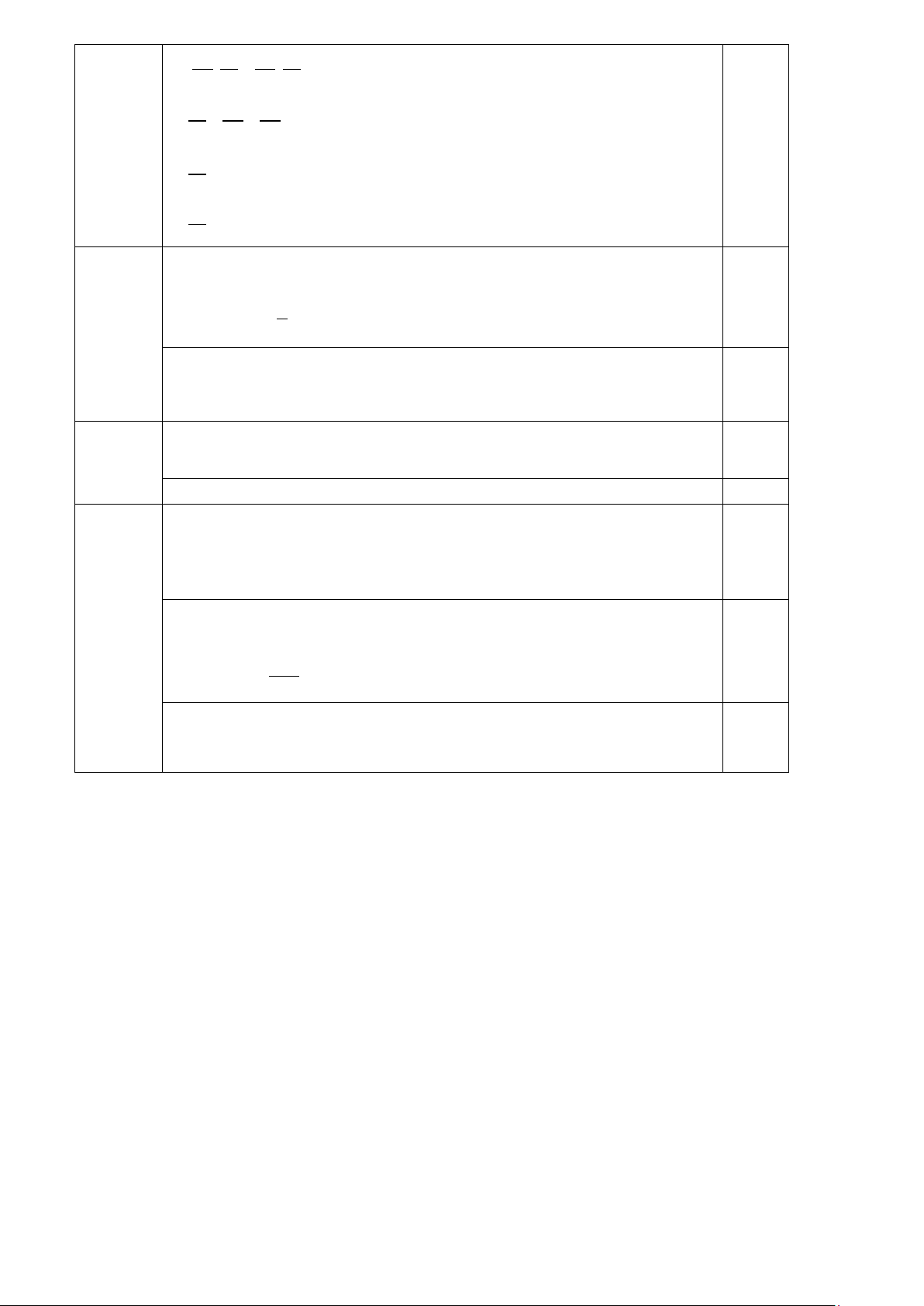 II. TỰ LUẬN: (6,0 điểm) Bài Lời giải Điểm 2 −5 a) + 12 24 4 − = + 5 24 24 0,25 − = 1 0,25 17 245− 1 b) .1 18 4 5 − 5 0.25 = . 18 4 25 − 0.25 = . 72 a x − 3 = 1 ) 5 3 x = 1 + 3 0,25 3 5 5 9 𝑥𝑥 = 15 + 15 0,25 18 x = 14 15 b (x + )3 ) 5 = 27 (x + )3 = 3 5 3 0,25 x + 5 = 3 x = 2 − 0,25 Trang 3/2 13 7 10 7 a) . + . 23 11 23 11 7 13 10 . = + 0,25 19 11 23 23 7 = .1 11 0,25 7 = 11