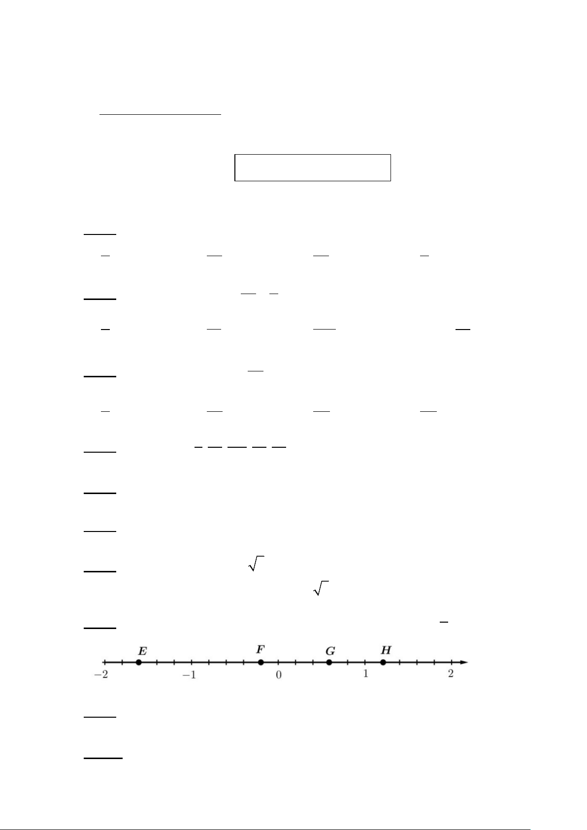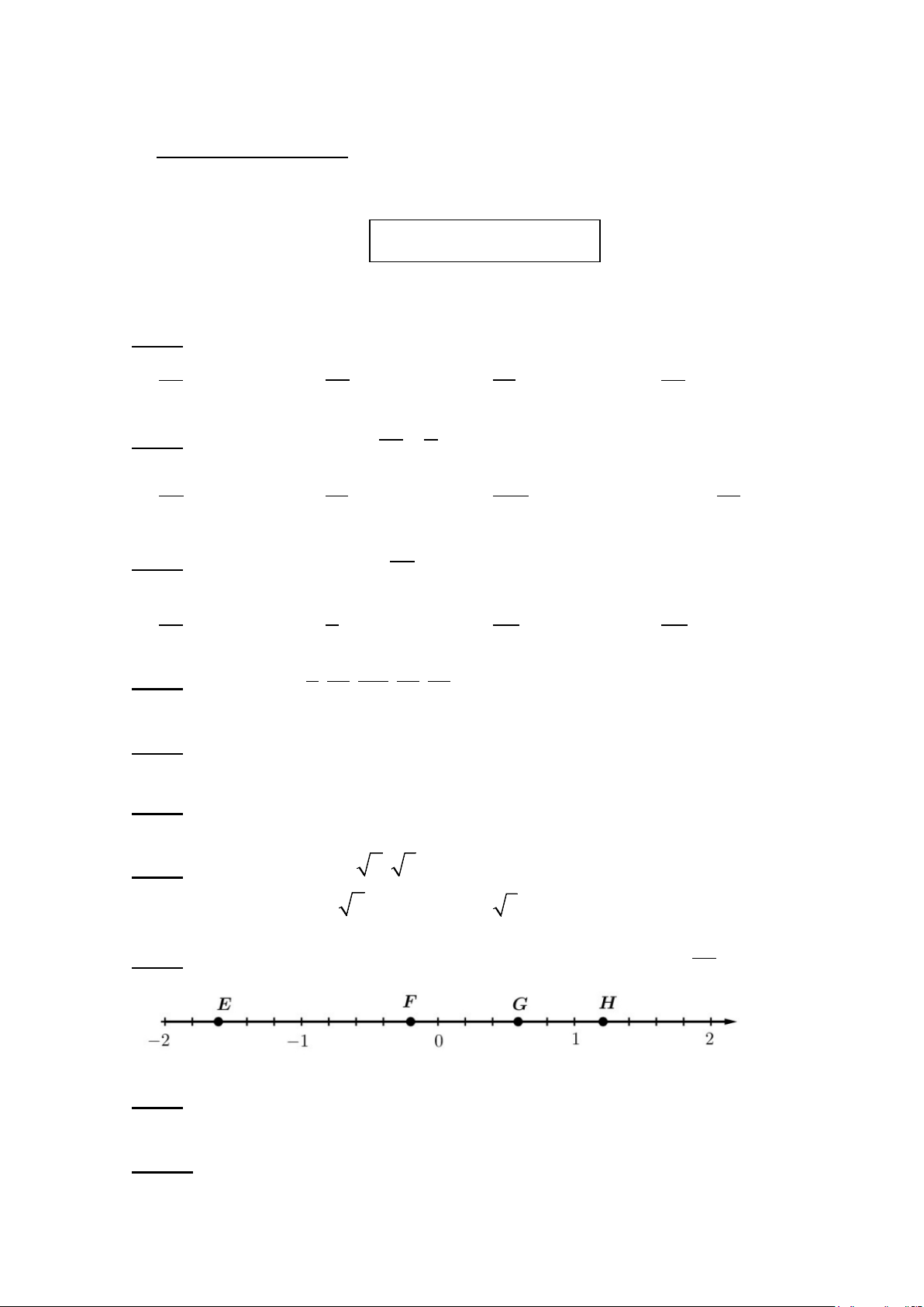 Câu 8: Quan sát trục số sau và cho biết điểm nào biểu diễn số hữu tỉ ? 5 A. Điểm E B. Điểm F C. Điểm G D. Điểm H