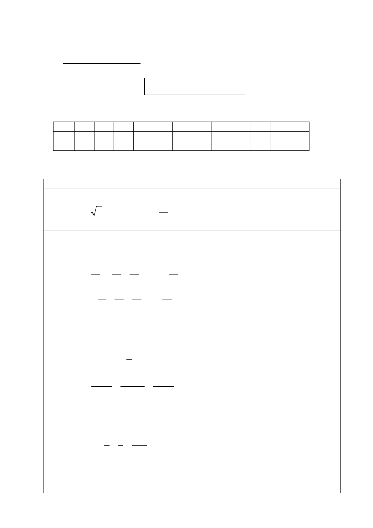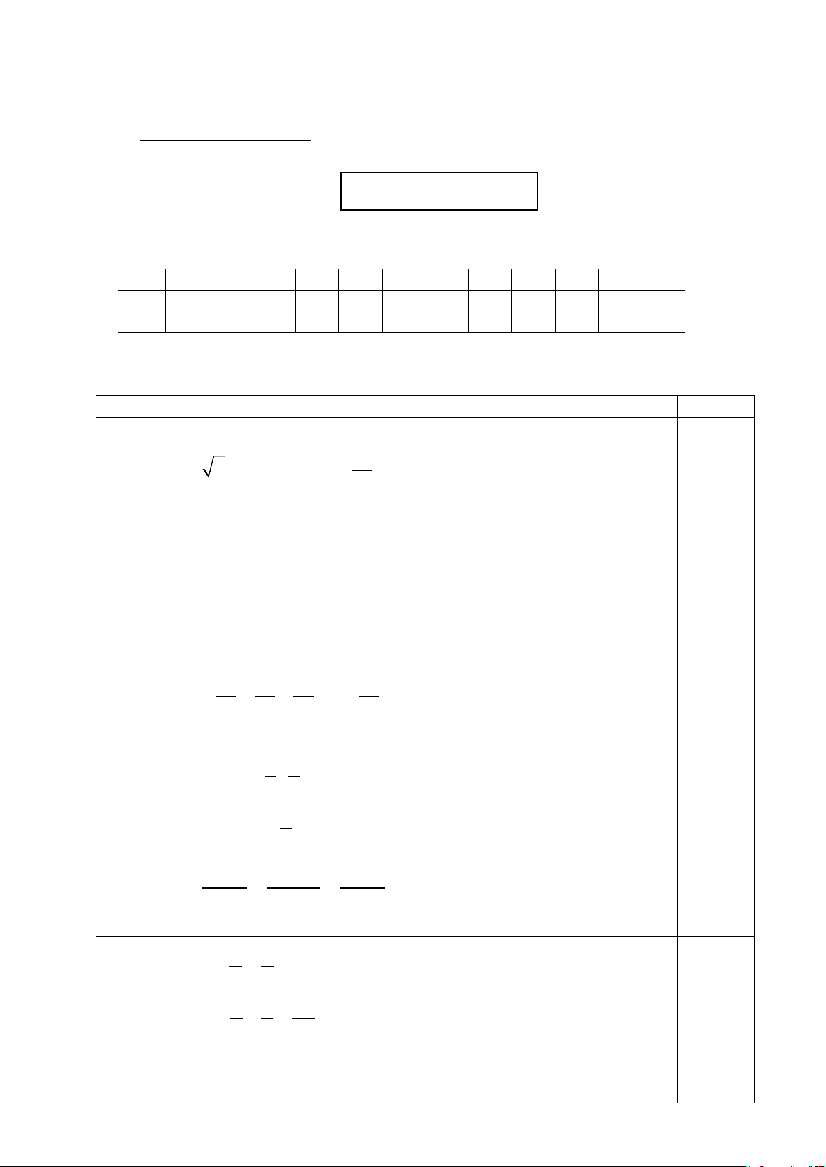 I. TRẮC NGHIỆM: (3,0 điểm) Mỗi câu làm đúng ghi 0,25 điểm.