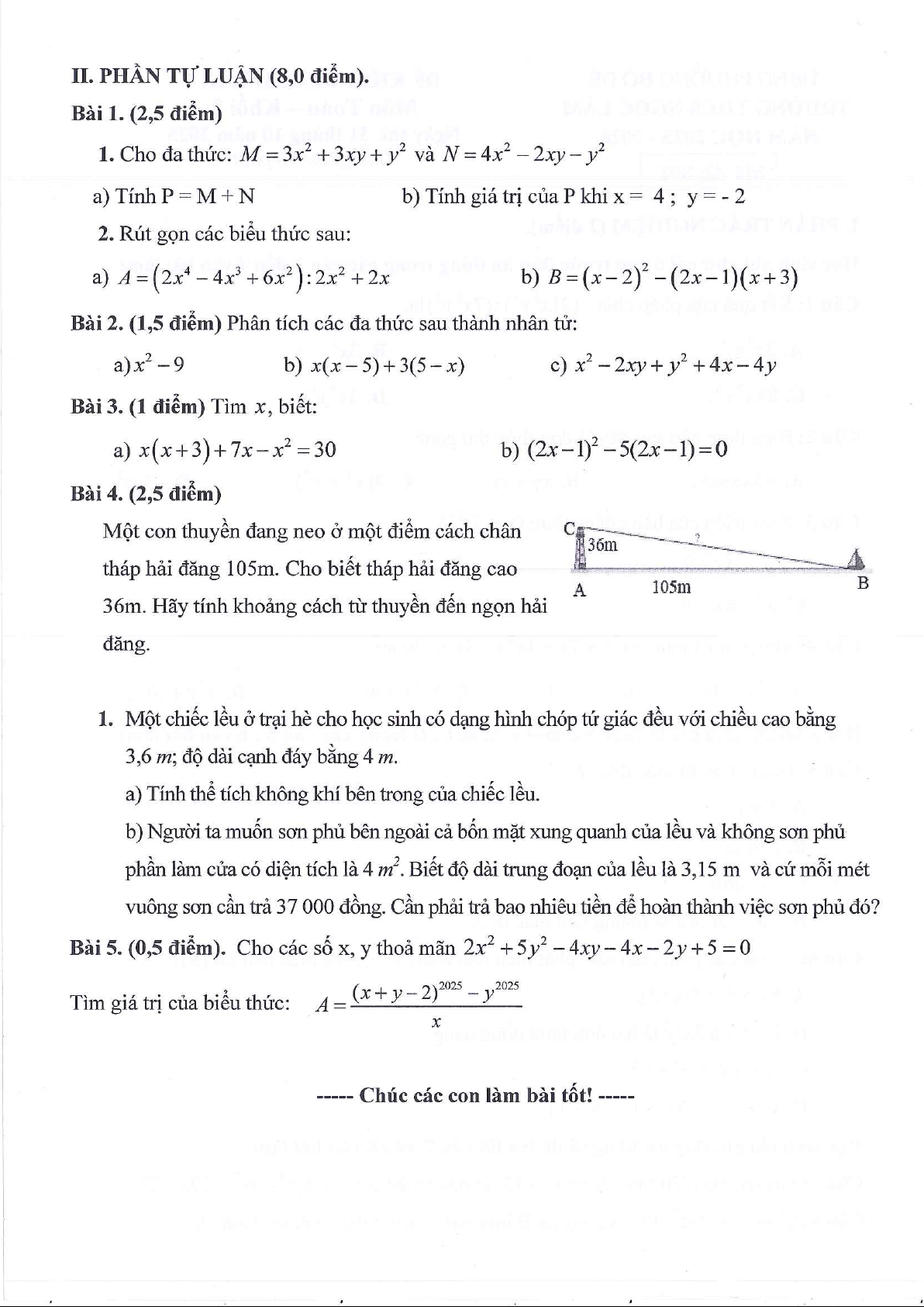 Đề thi giữa học kì 1 Toán 8 năm 2025 – 2026 trường THCS Chu Văn An – Hà Nội