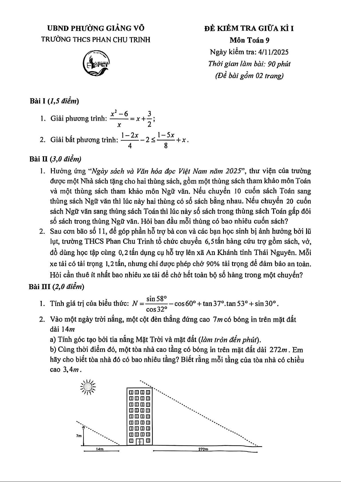 Đề giữa kì 1 Toán 9 năm 2025 – 2026 trường THCS Phan Chu Trinh – Hà Nội