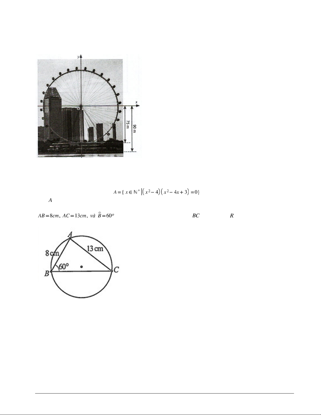 Câu 2: Một chiếc đu quay có bán kính 75𝑚, tâm của vòng quay ở độ cao 90𝑚, thời gian thực hiện mỗi