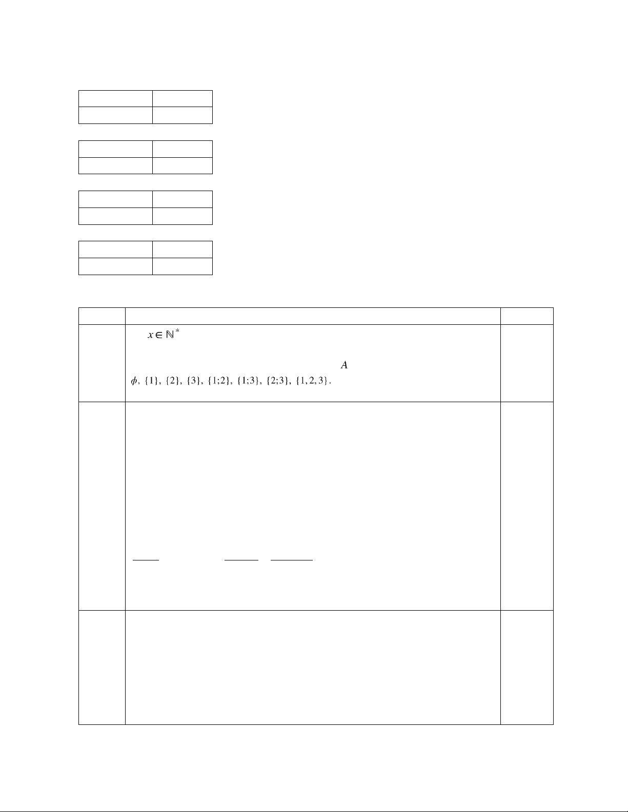 PHẦN IV: Tự luận (4 câu – 3 điểm) Câu Hướng dẫn chấm Điểm 1 Vì nên 𝐴𝐴 = {1; 2; 3}. 0.5