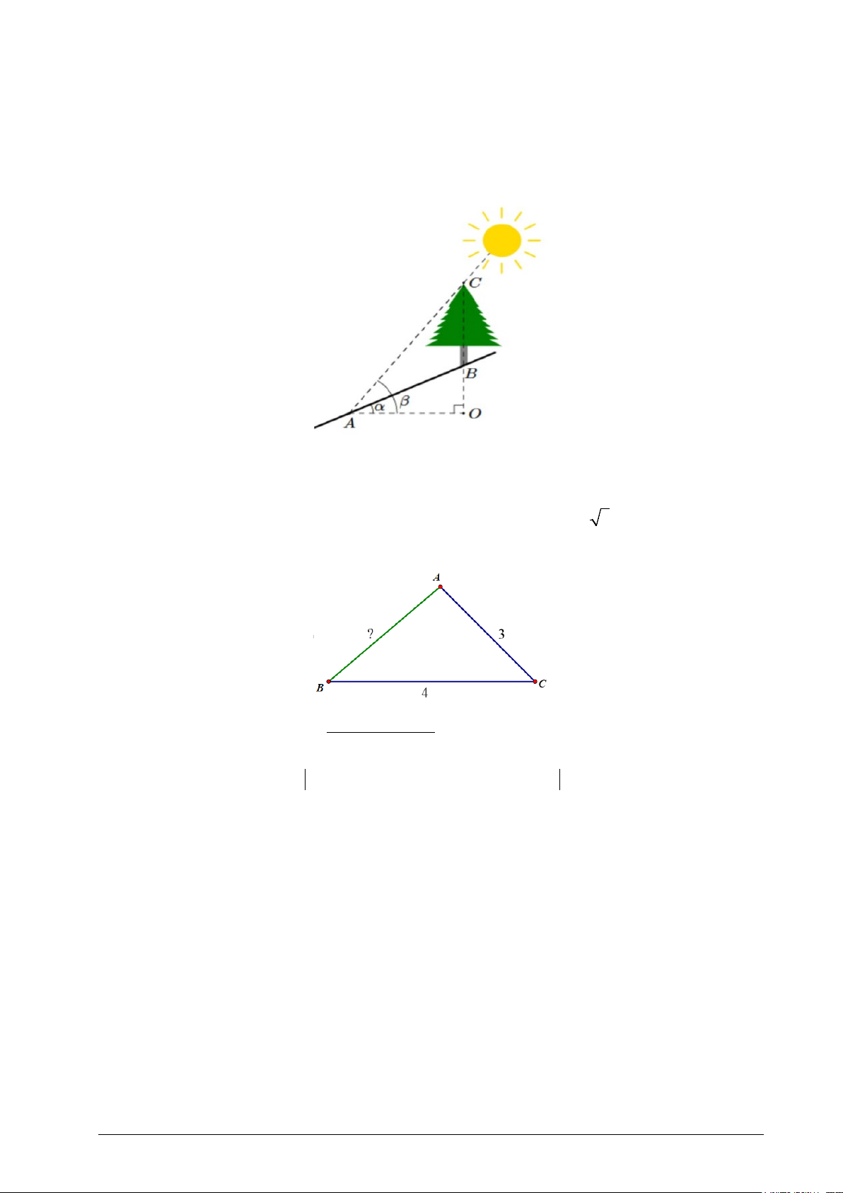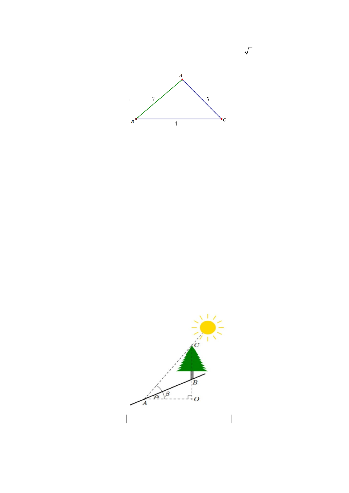Câu 1. Trên sườn đồi có 1 cái cây thẳng đứng (tham khảo hình vẽ) đổ bóng dài AB = 39,5 m