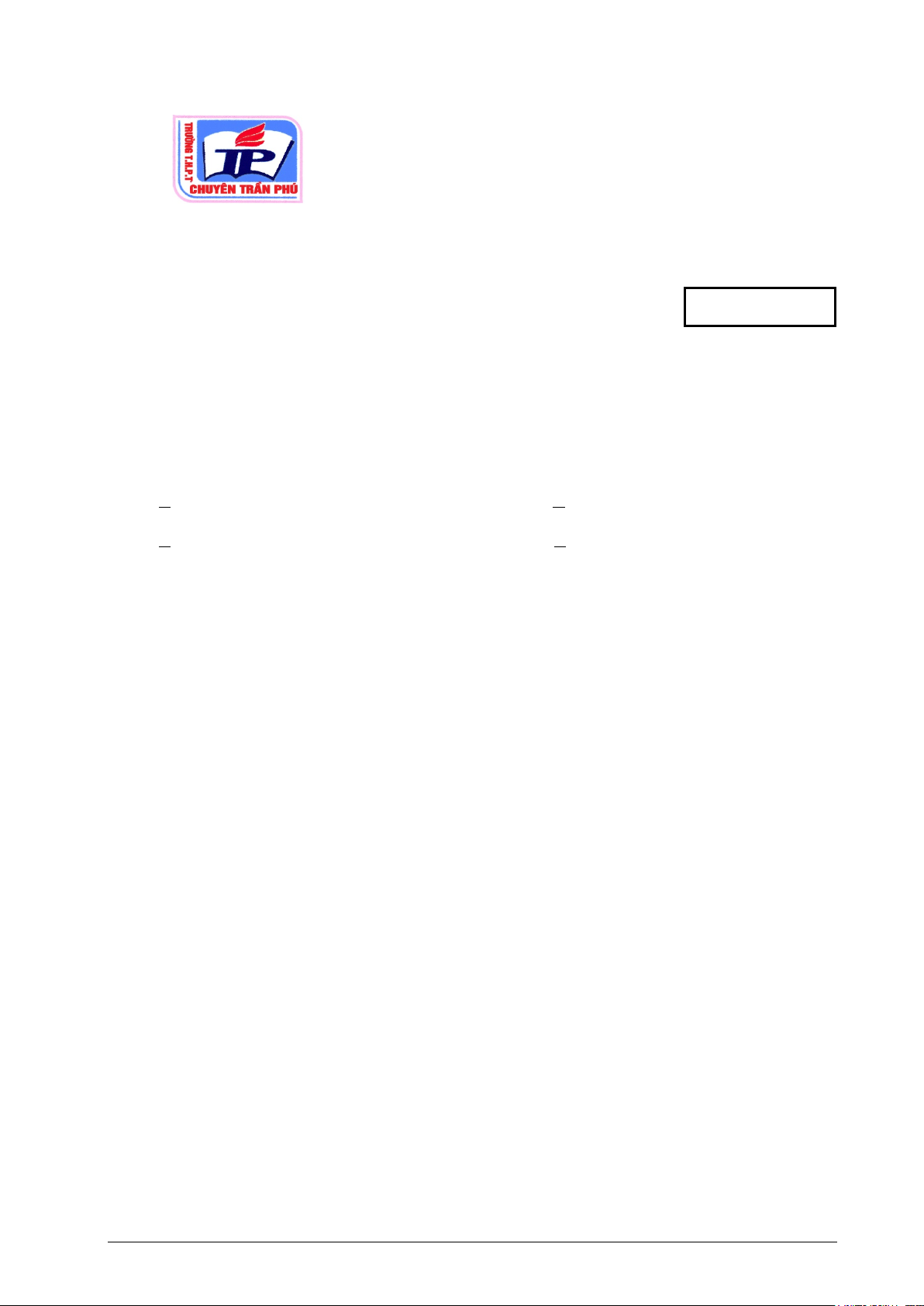 Họ, tên thí sinh:.......................................................................................