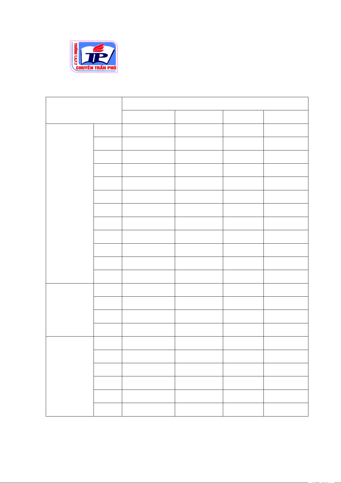 MÔN: TOÁN - LỚP: 10 Cấp độ tư duy TT Chủ đề Nội dung Trắc nghiệm Câu hỏi đúng sai Trả lời ngắn Nhận Thông Vận Nhận Thông Vận Nhận Thông Vận biết hiểu dụng biết hiểu dụng biết hiểu dụng 1