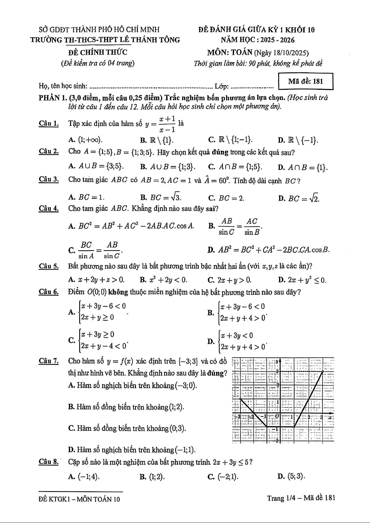 Đề giữa kỳ 1 Toán 10 năm 2025 – 2026 trường Lê Thánh Tông – TP HCM