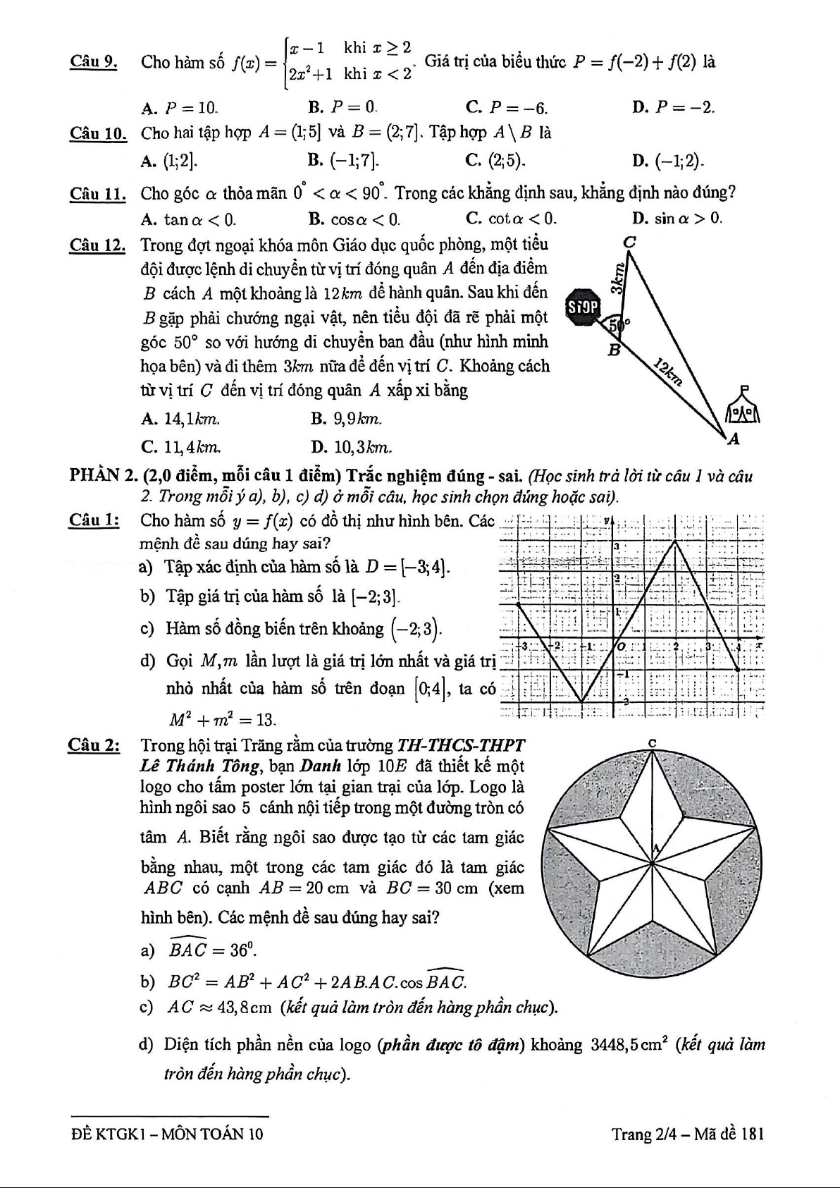 Đề kiểm tra giữa kỳ 1 Toán 10 năm 2025-2026 – THPT Đoàn Thị Điểm, Hà Nội