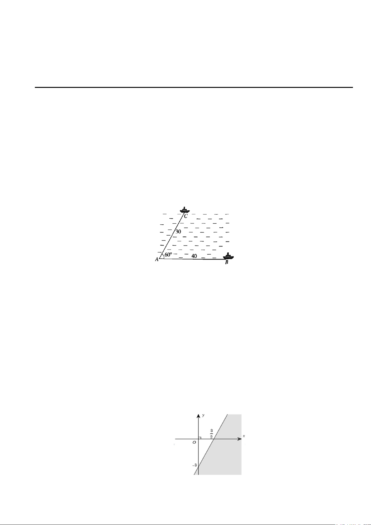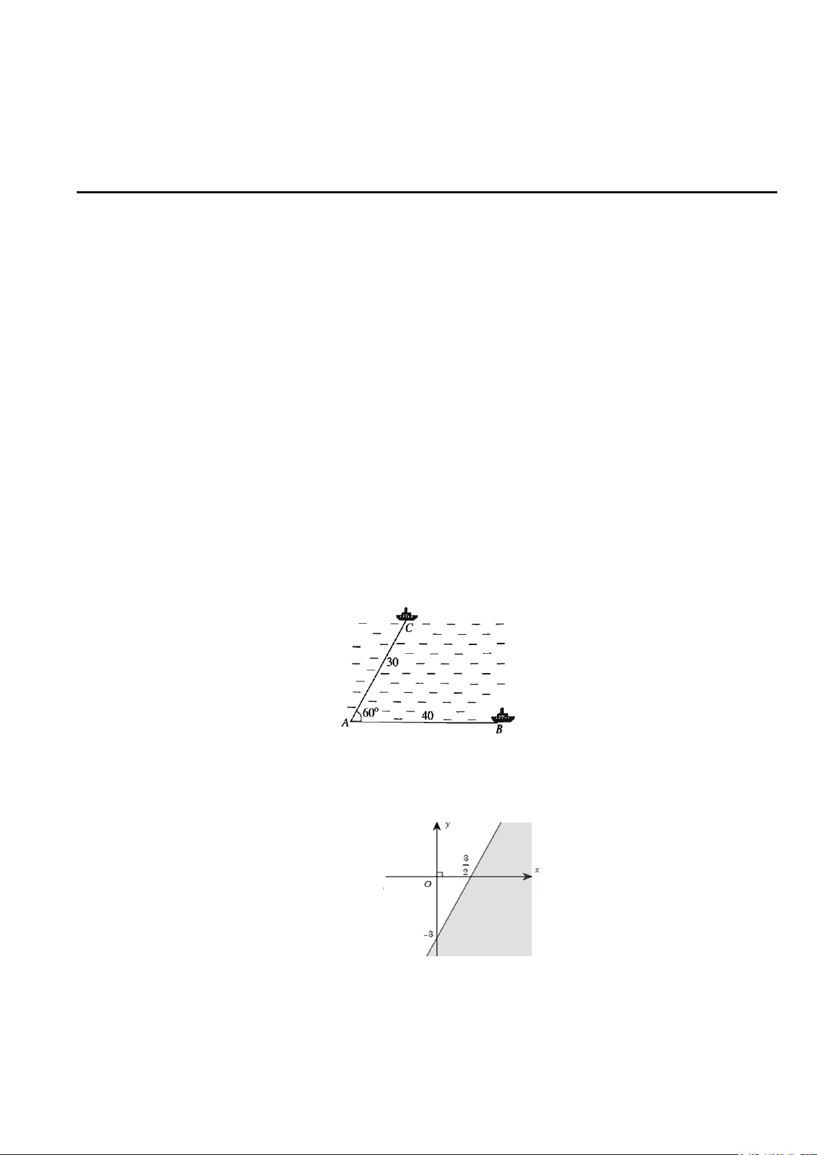 Câu 3. Hai chiếc tàu thủy cùng xuất phát từ một vị trí A , đi thẳng theo hai hướng tạo với nhau góc 60°.