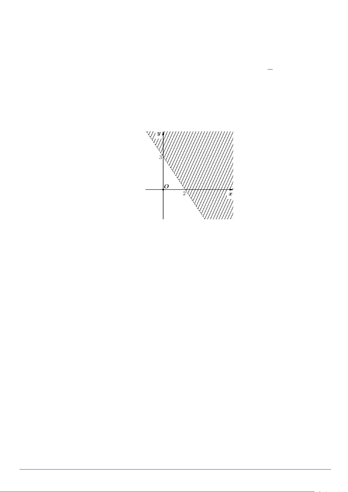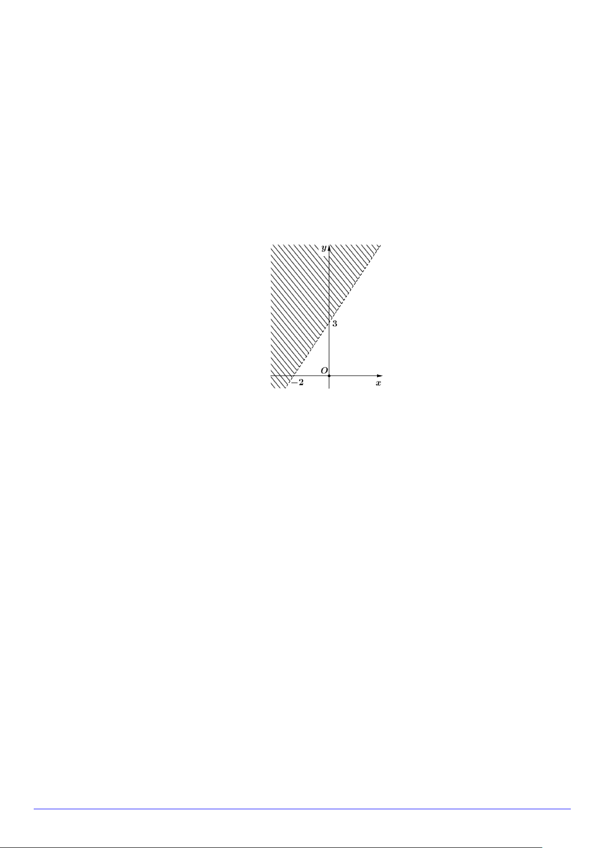 Câu 12. Phần bị gạch sọc trong hình vẽ bên dưới là miền nghiệm của bất phương trình nào?