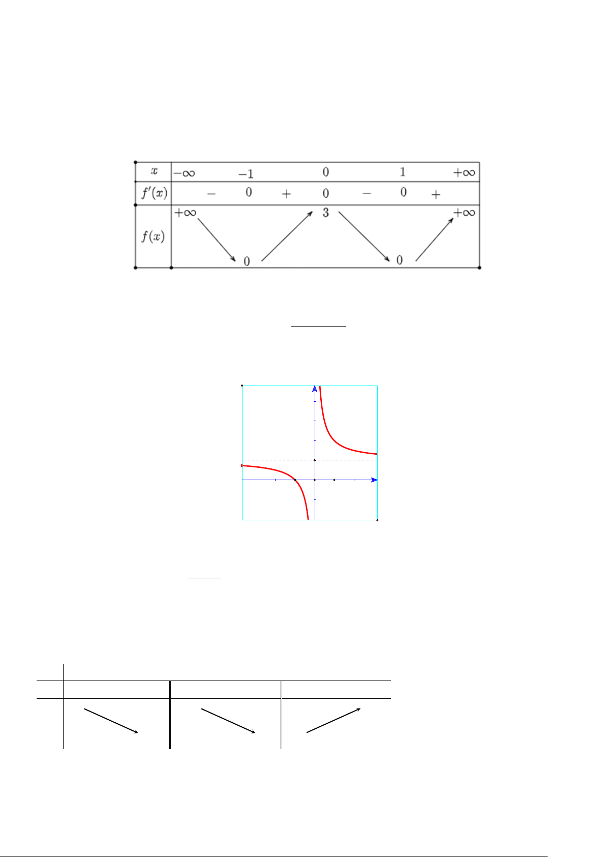 Câu 2: Cho hàm số y = f (x) có bảng biến thiên sau: