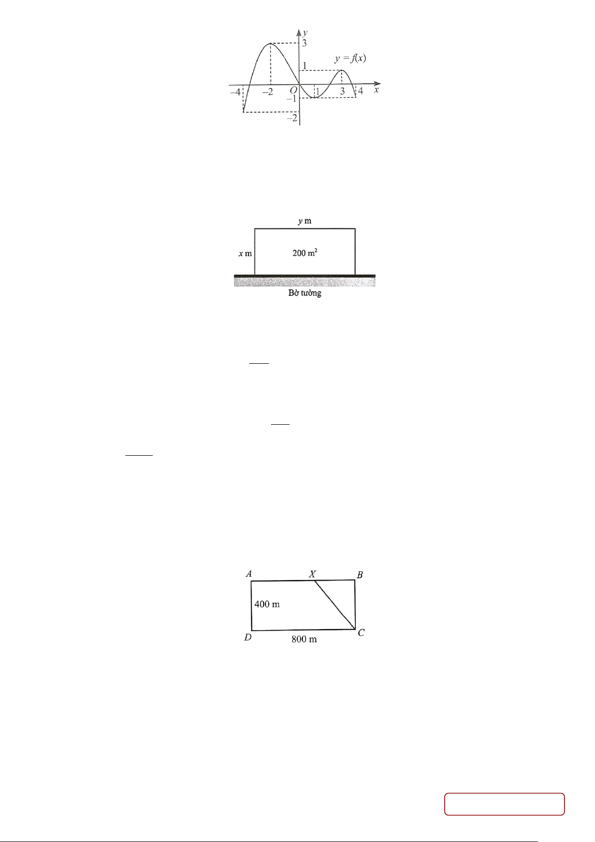 Câu 1. Cần rào ba cạnh để cùng với bờ tường có sẵn tạo thành mảnh vườn hình chữ nhật có diện tích 2 200 m (Hình). Kí hiệu x( m), y(