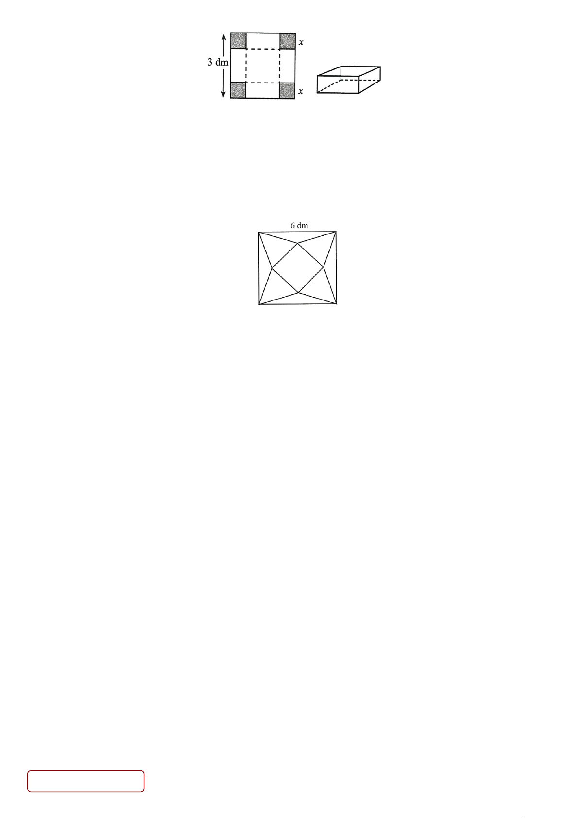 Câu 2. Cho một tấm nhôm có dạng hình vuông cạnh 3dm . Bác Tùng cắt ở bốn góc bốn hình vuông cùng có độ