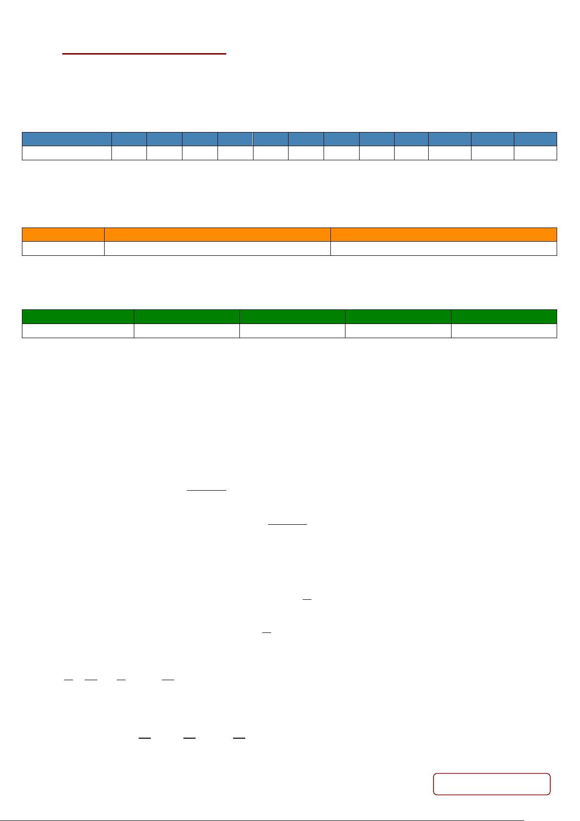 PHẦN I. Câu trắc nghiệm nhiều phương án chọn. Câu 1 2 3 4 5 6 Đáp án Câu 7 8 9 10 11 12 Đáp án