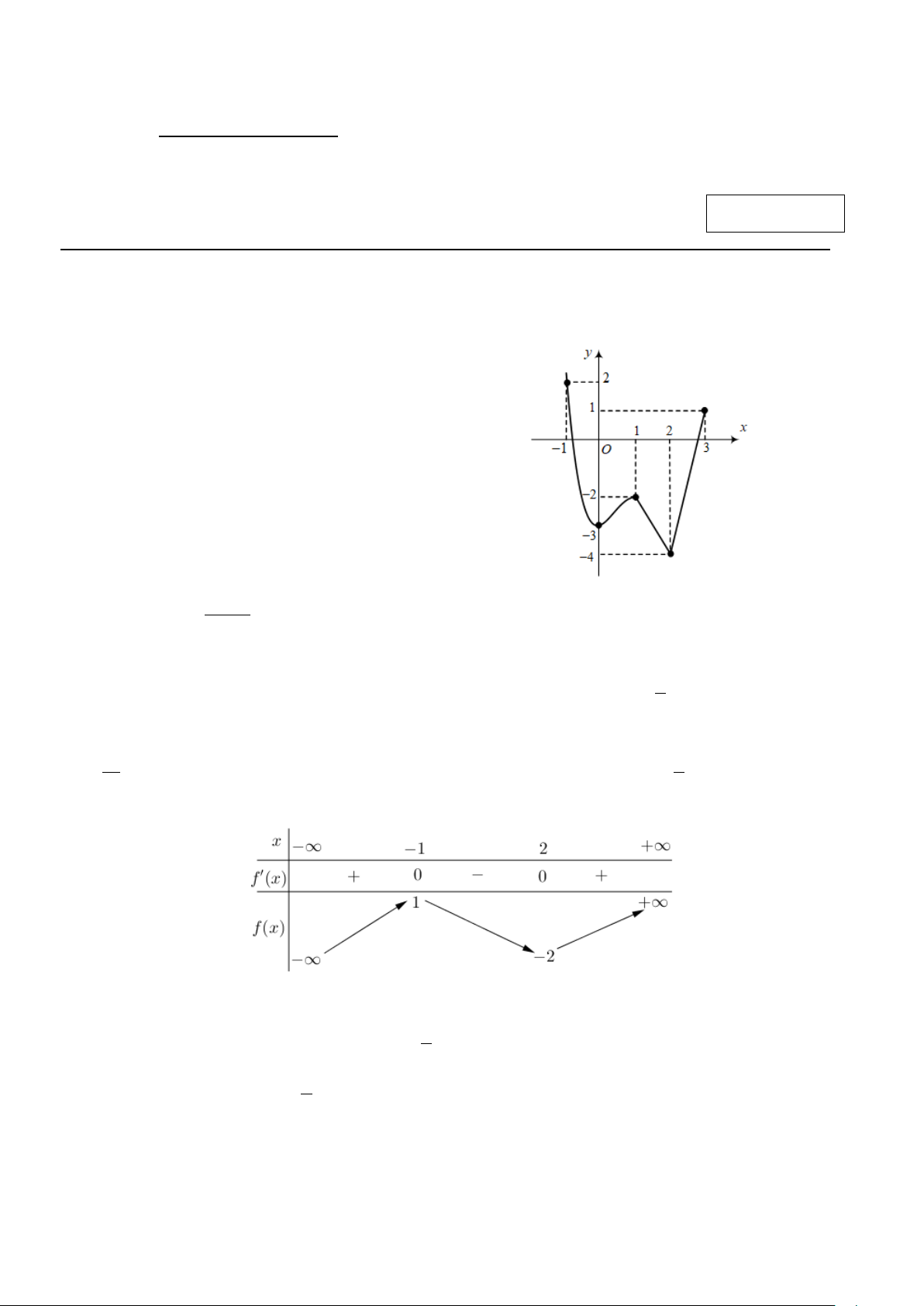 Câu 4. Cho hàm số f (x) có bảng biến thiên như sau: