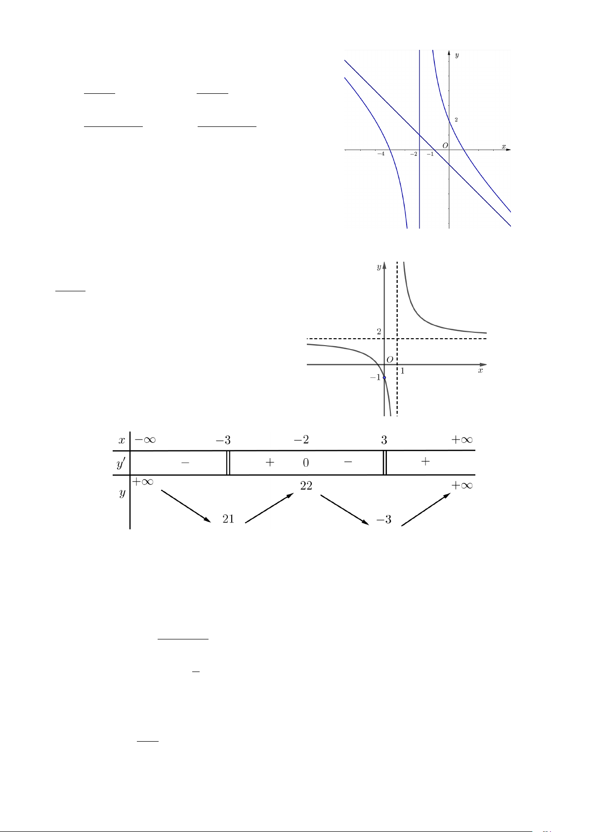 Câu 6. Đồ thị ở hình bên là đồ thị của hàm số nào trong các hàm số sau? − + − + A. x 4 y = . B. x 2 y = . x + 2 x +1 2 − − + 2 − − + C. x 3x 2 x 3x 4 y = . D. y = . x +1 x + 2