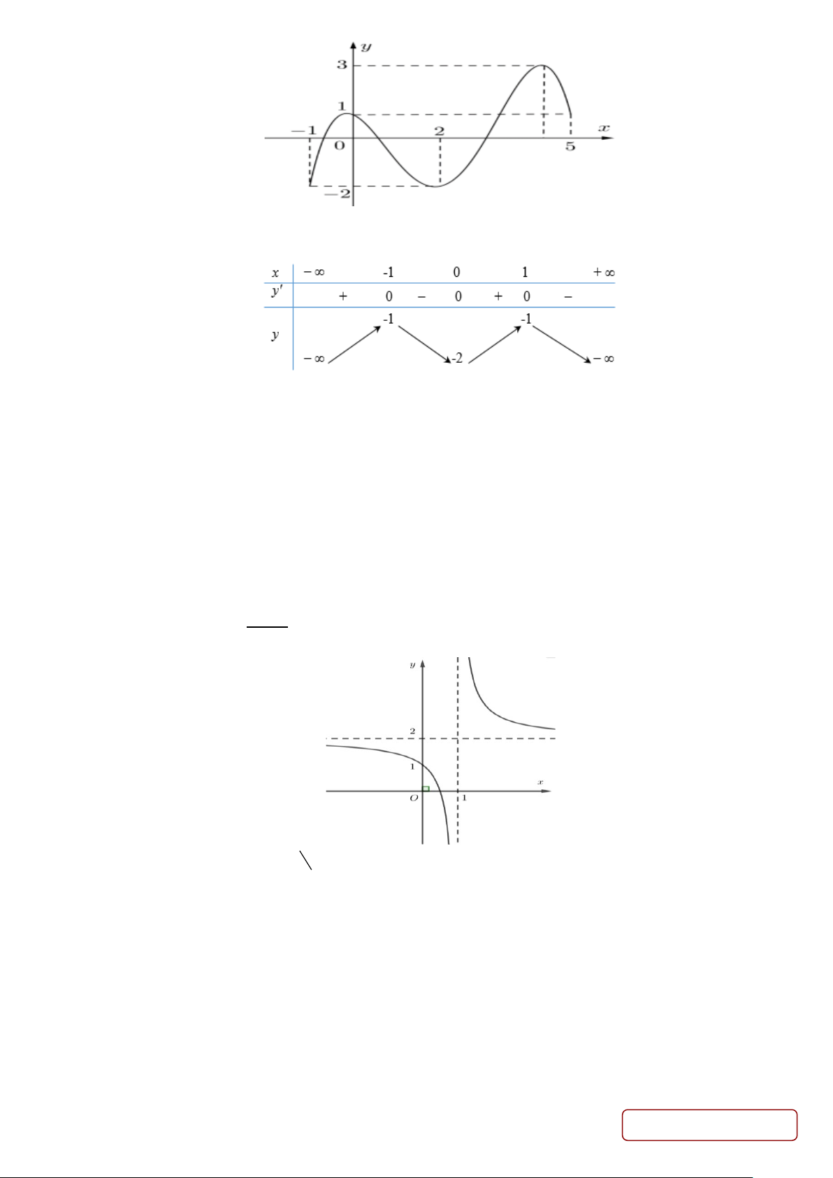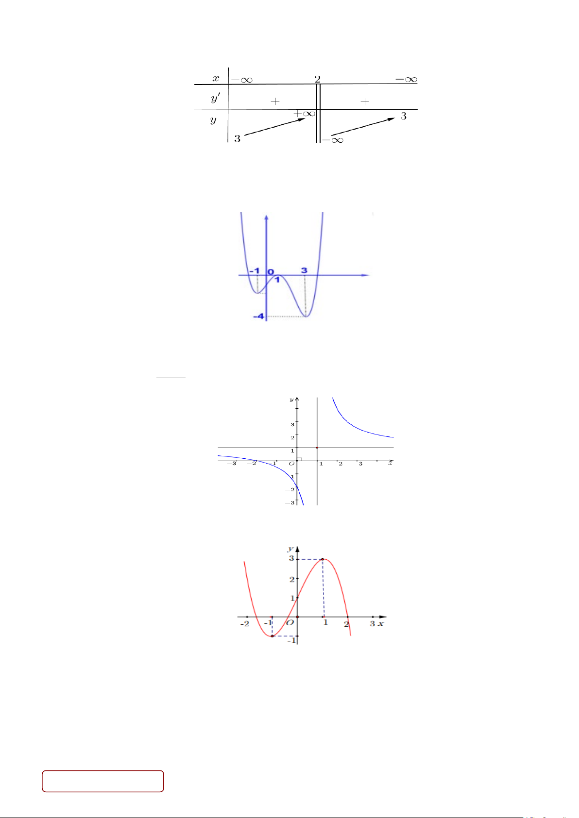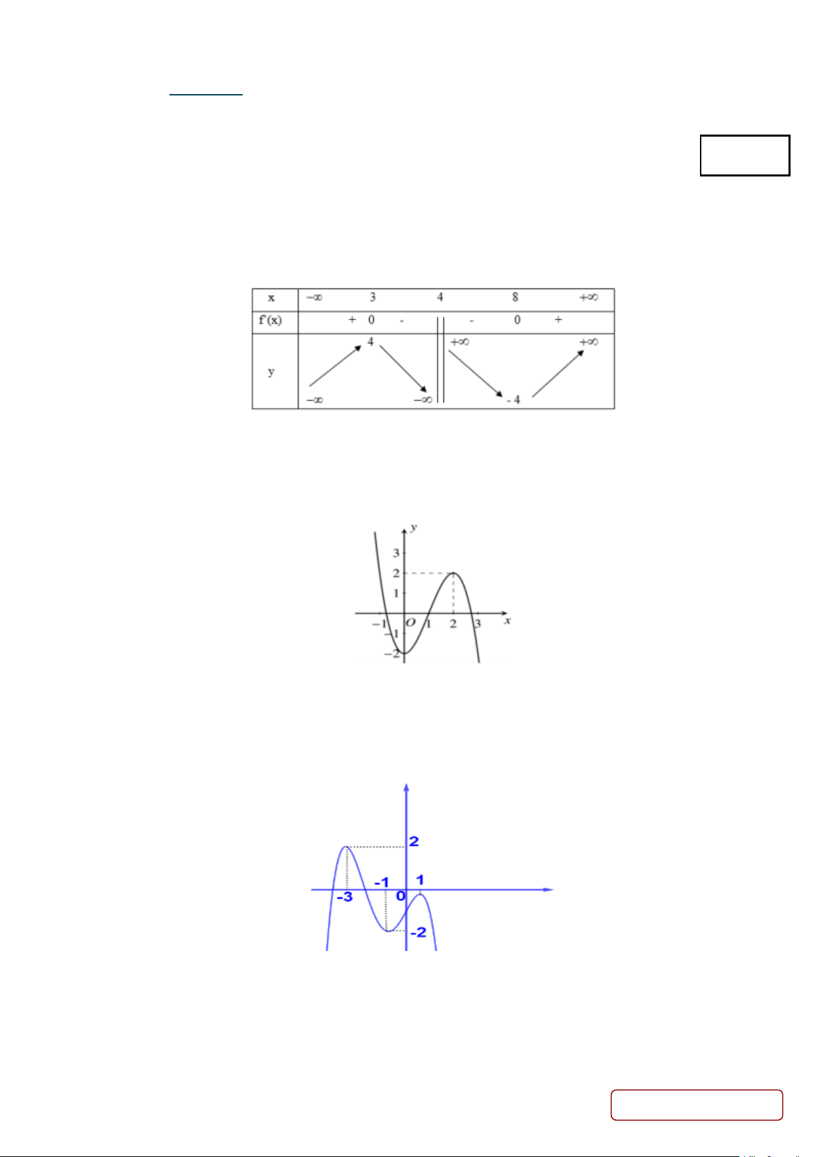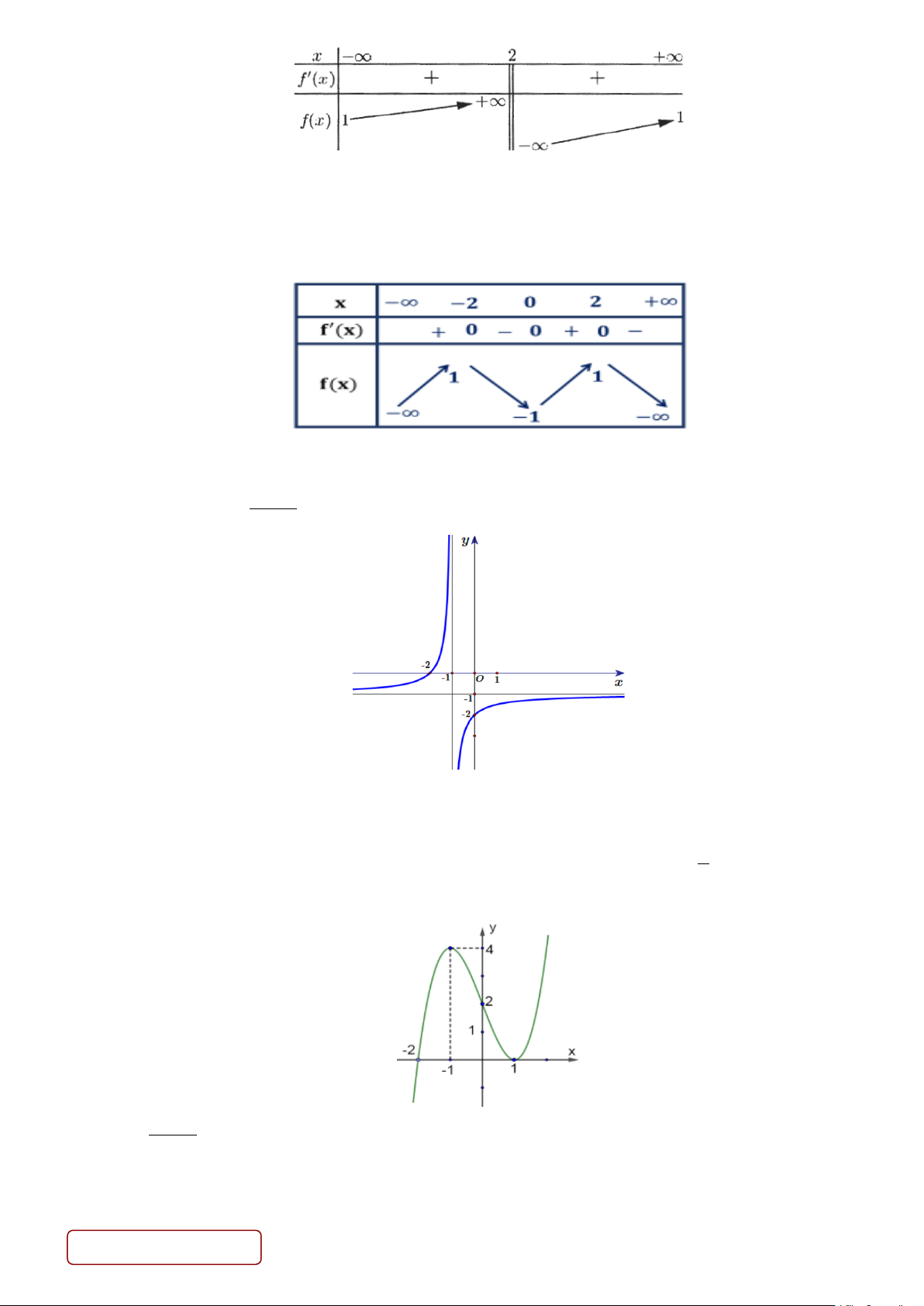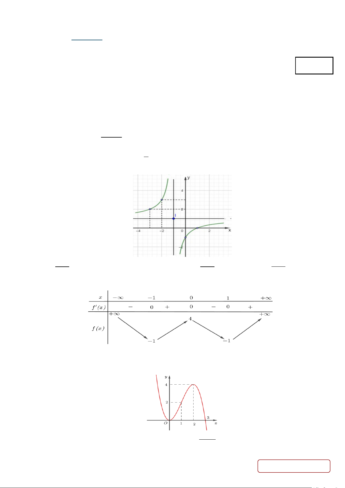 Câu 1. Cho hàm số y = f (x) có bảng biến thiên như hình bên