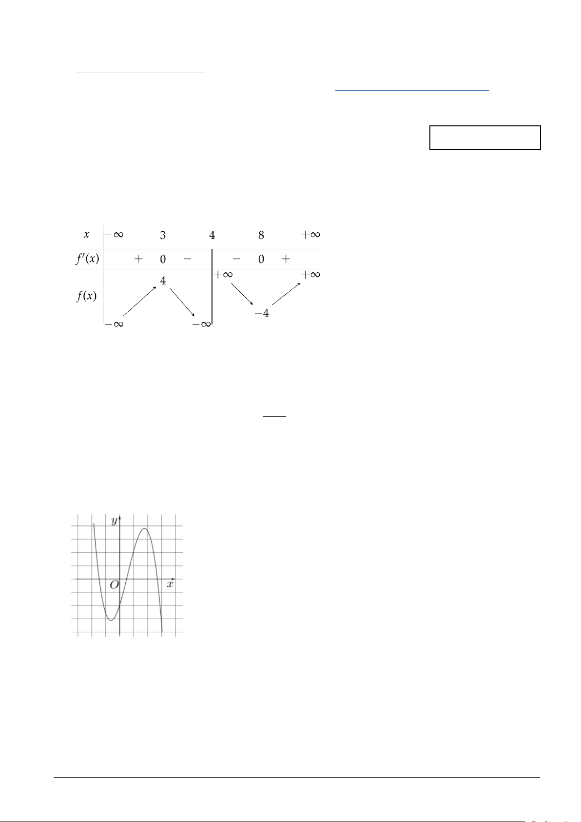 Câu 1. Cho hàm số y = f (x) có bảng biến thiên như sau: x ∞ 0 3 + ∞ y' 0 + + ∞ 3 0 y 3 4