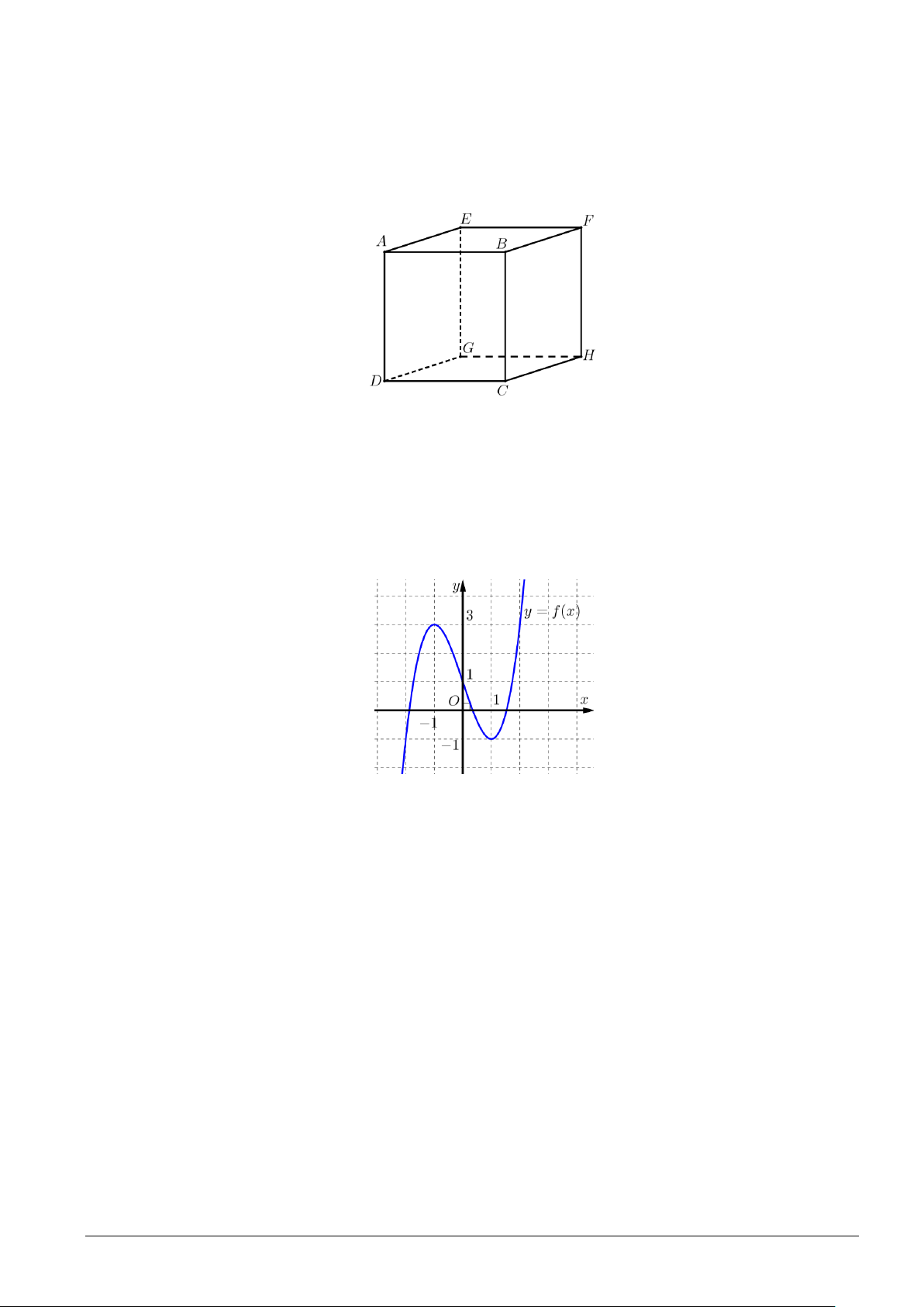 Câu 1. Cho đồ thị hàm số y = f (x) có hình vẽ dưới đây và có tập xác định trên .
