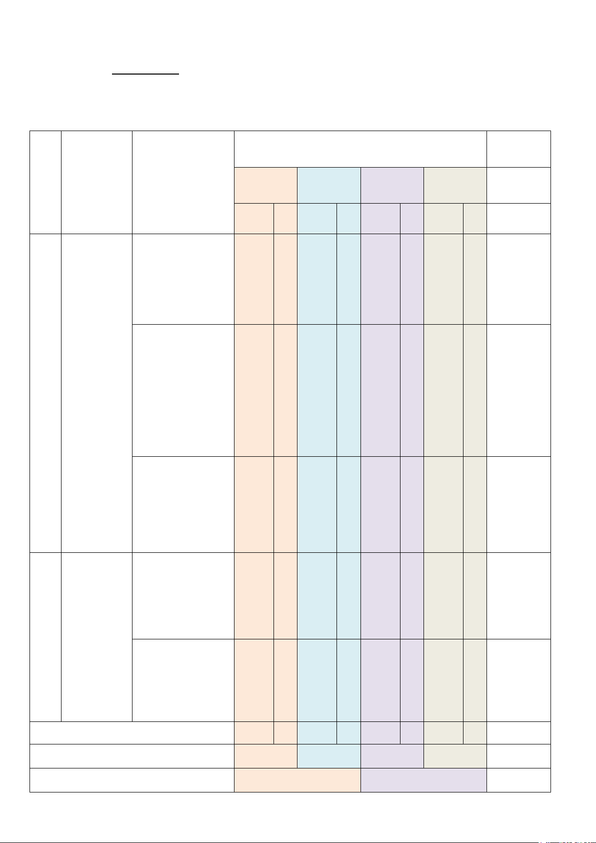 Mức độ đánh giá Chương/ Nội dung/đơn vị điểm TT Chủ đề kiến thức Thông Vận dụng Nhận biết Vận dụng hiểu cao