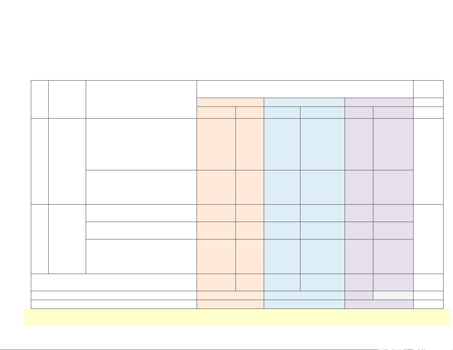 tiễn liên quan đến hình học. Bài 5( 0,5đ) Tổng 12 1 0 5 0 4 22 (3 đ) (1,0đ) (0đ) (3 đ) (0đ) (3 đ) (10 đ) Tỉ lệ % 40% 30% 20% 100% Tỉ lệ chung 40% 30% 30% 100%