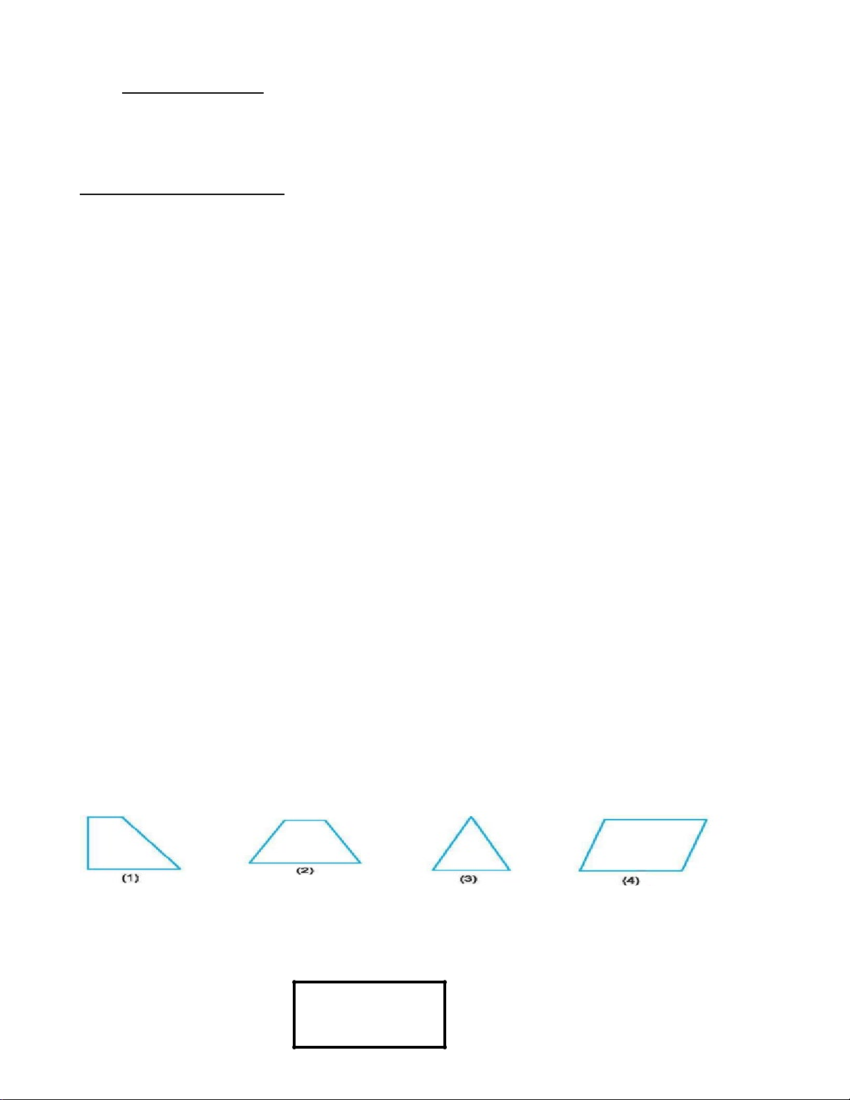Câu 10. Trong hình dưới đây hình nào là hình bình hành? A.Hình (1). B. Hình (4). C.Hình (2). D. Hình (3).