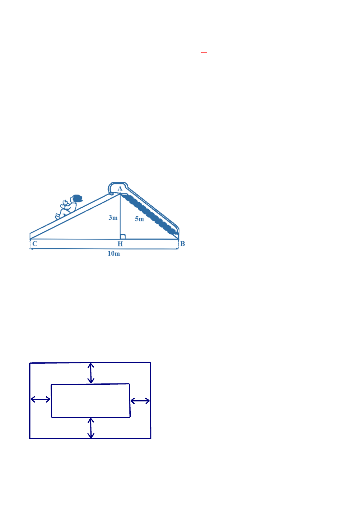 đường trượt AB = 5 m, khoảng cách giữa hai chân đường trượt BC = 10 m.